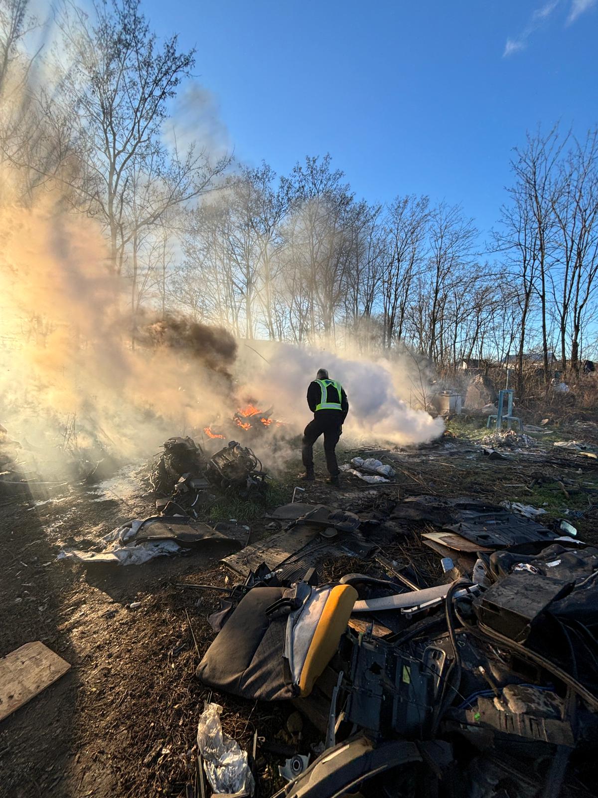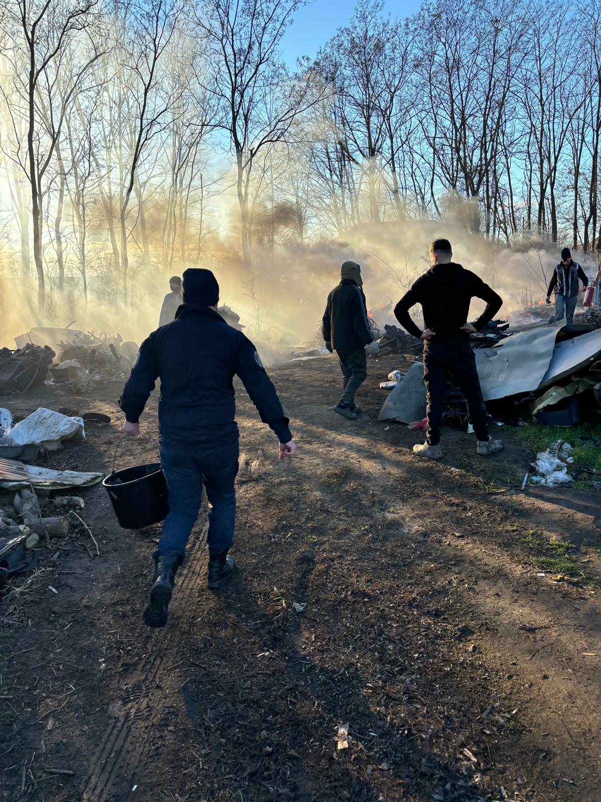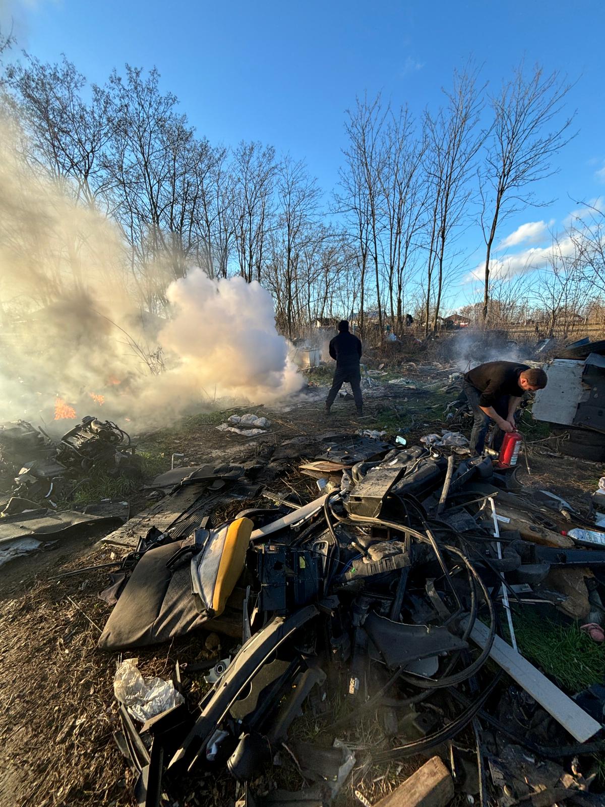 A ars o cantitatea însemnată de deșeuri de mase plastice. Au fost protejate de foc o casă, aproximativ un metru cub de lemne și liziera din apropiere.