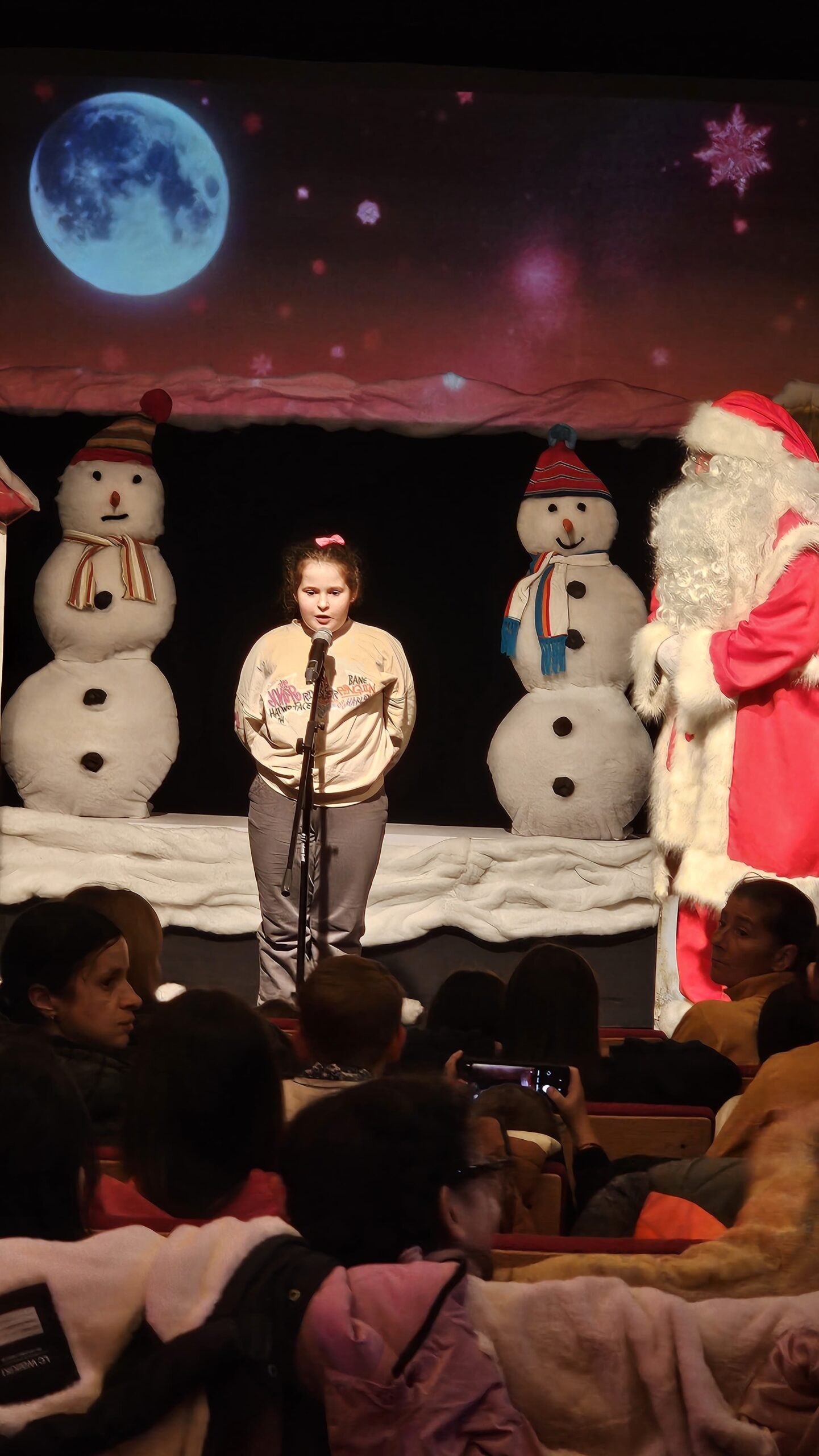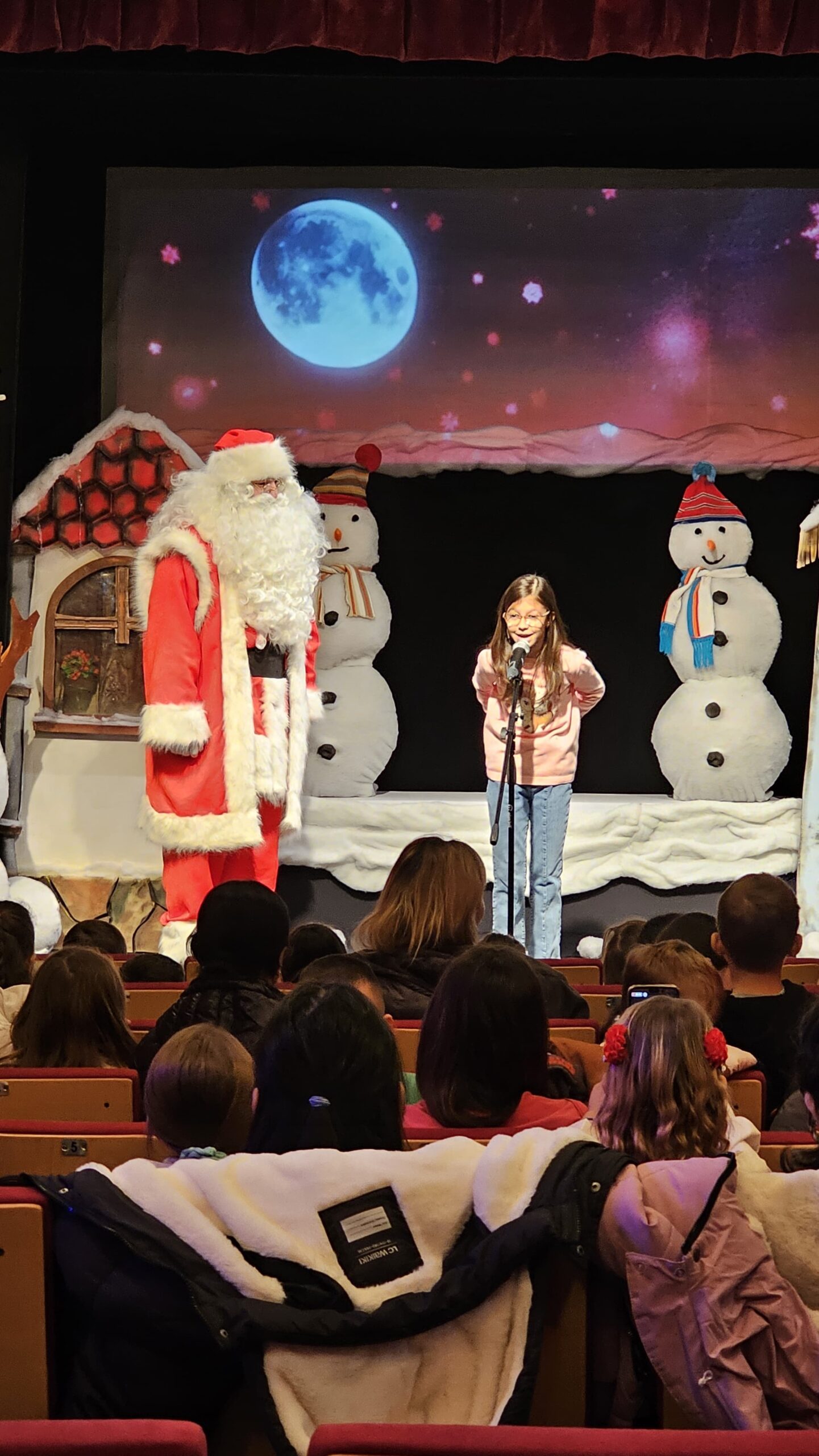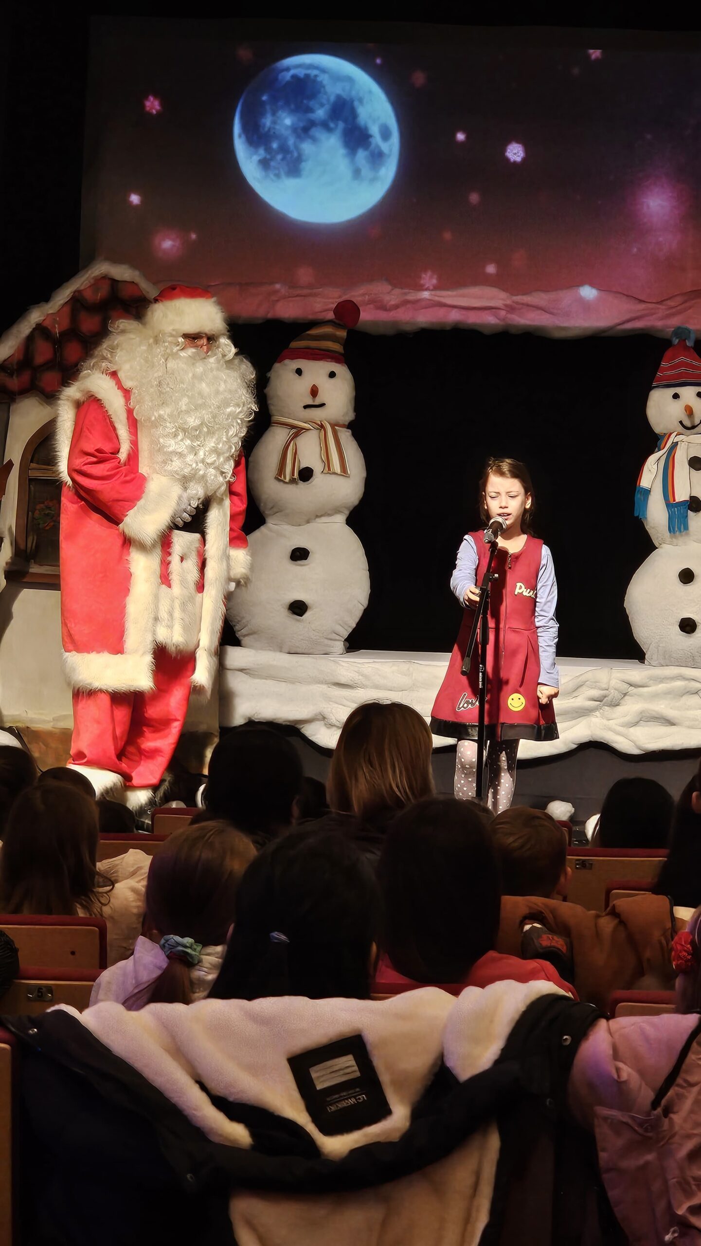 Spectacolul „Povestea Omului de Zăpadă” a transformat scena într-un tărâm de poveste, captivând publicul cu o poveste plină de magie, prietenie și emoție. Sala teatrului a fost plină de râsete și entuziasm, iar atmosfera festivă a fost completată de prezența Moșului Crăciun, care a ascultat poeziile și cântecele micuților.