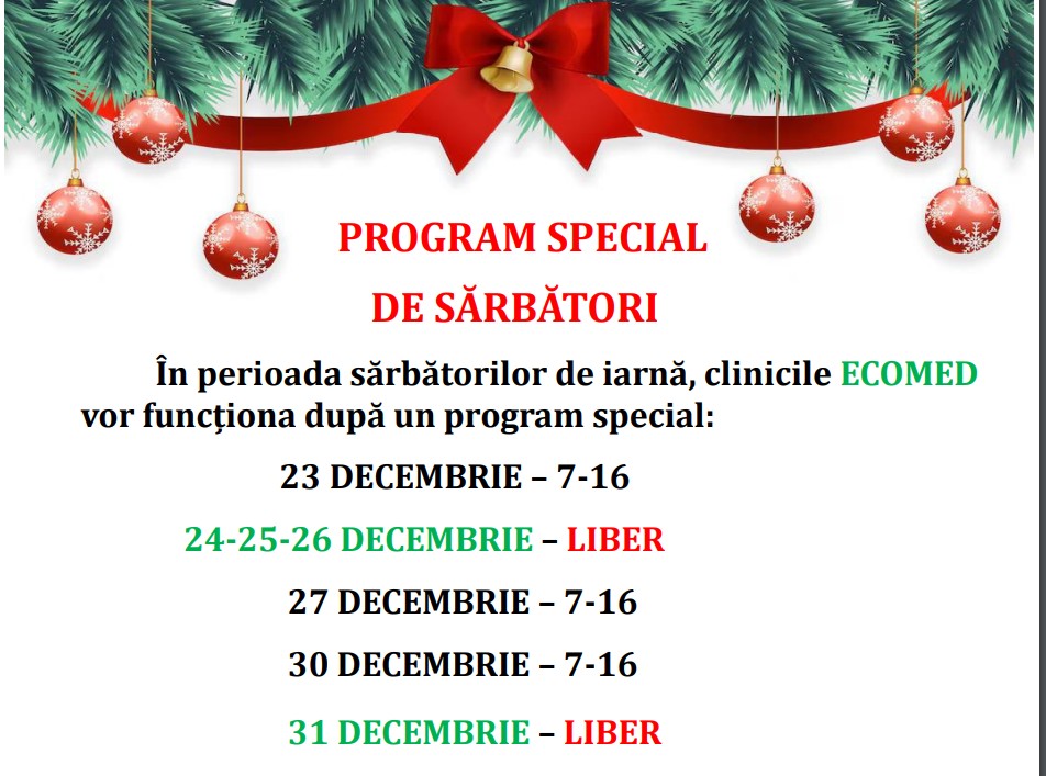 În perioada sărbătorilor de iarnă, clinicile ECOMED vor funcționa după un program special: