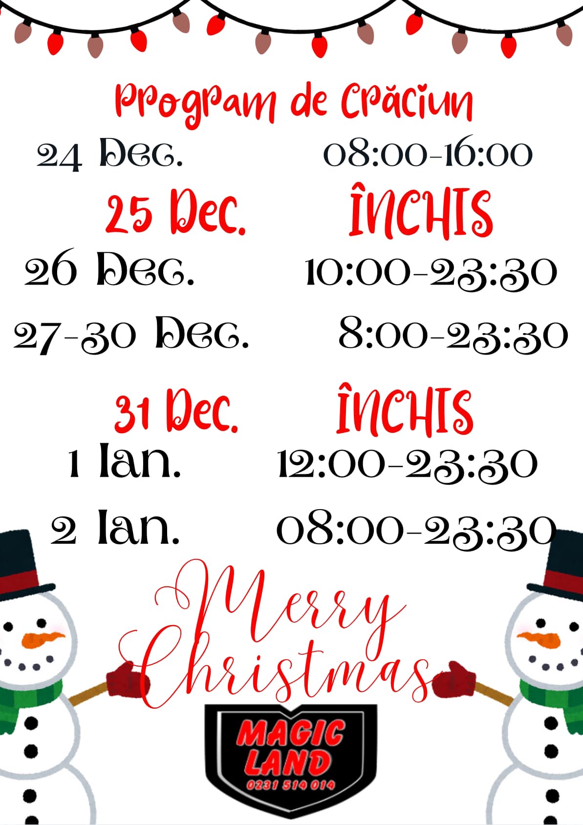 Restaurantul Magic Land din Botoșani își ține ușile închise de sărbători doar două zile, respectiv în prima zi de Crăciun și pe 31 decembrie. În restul zilelor de sărbătoare, restaurantul își așteaptă clienții.