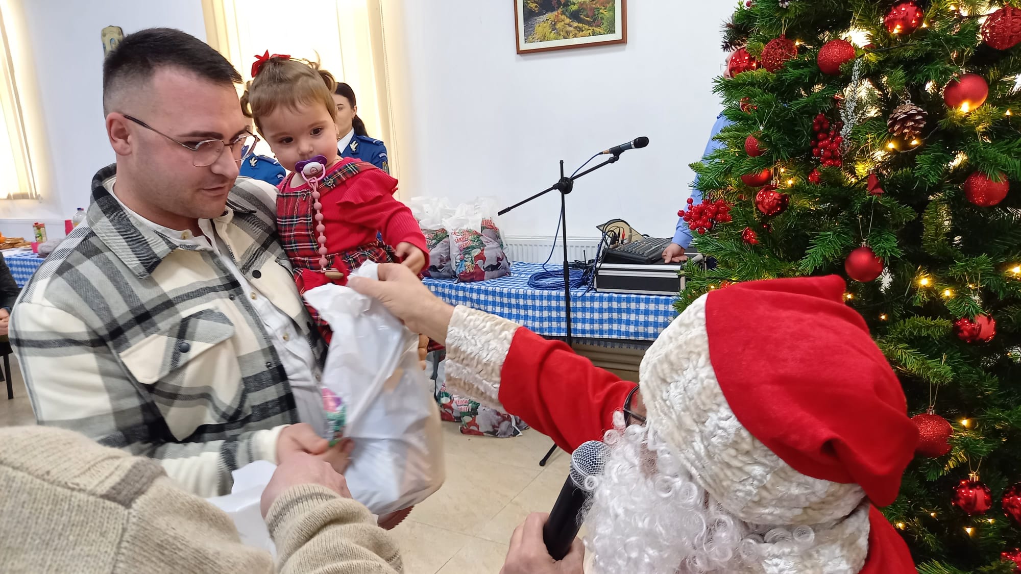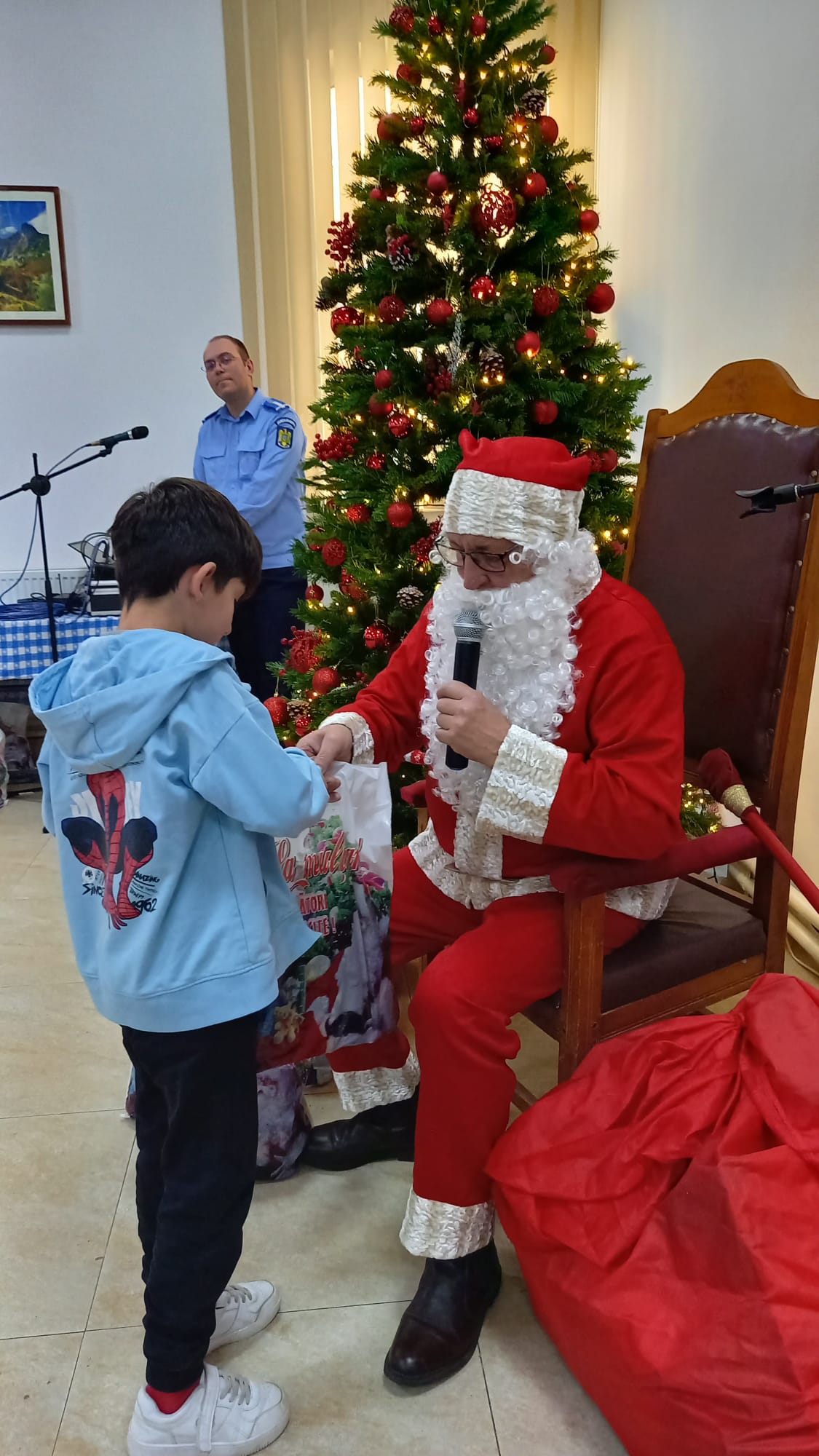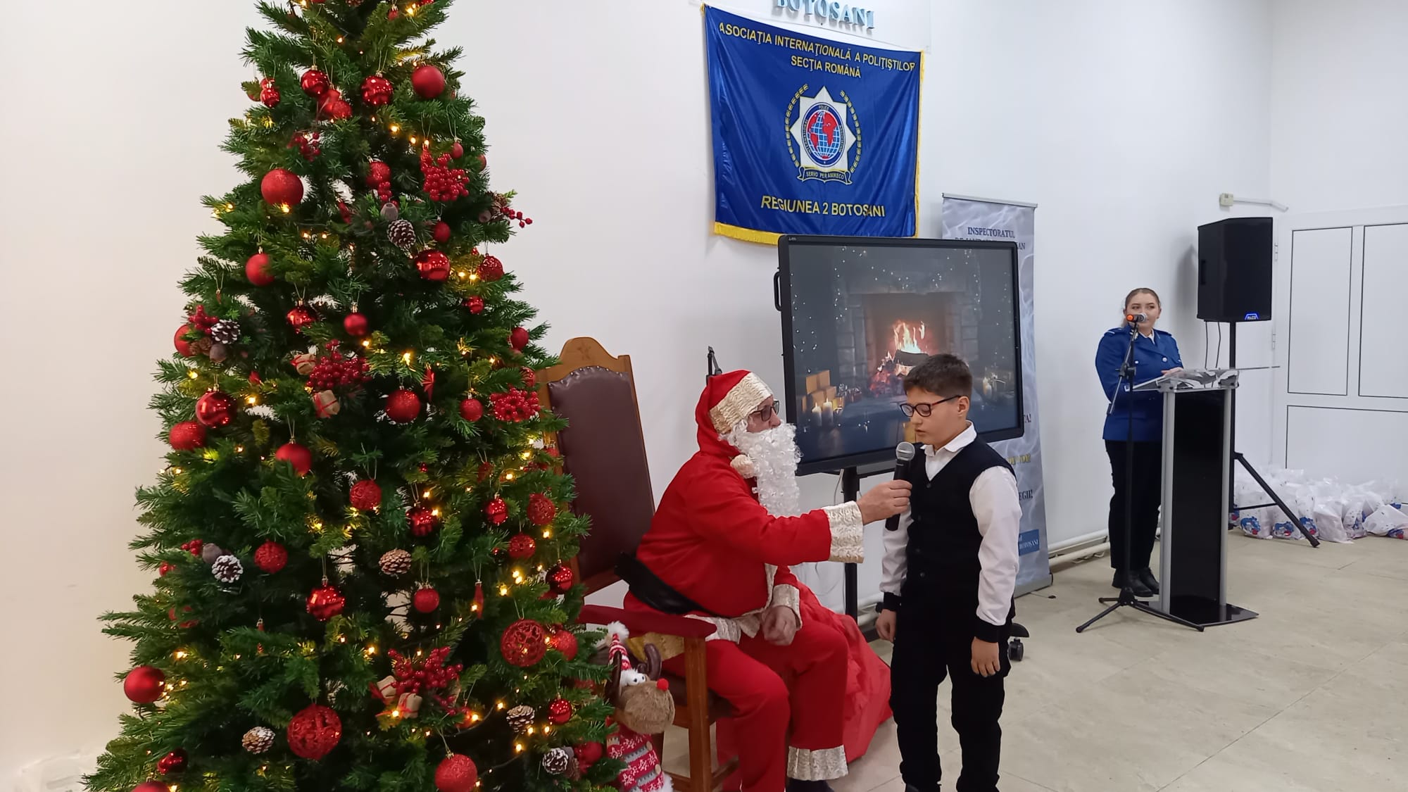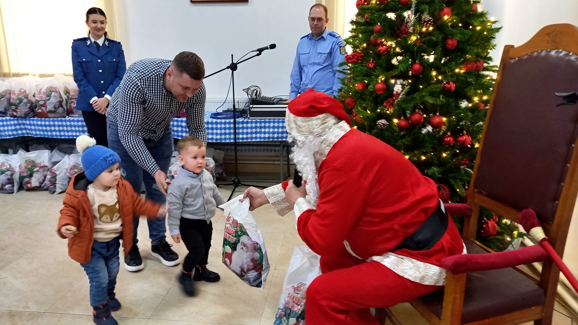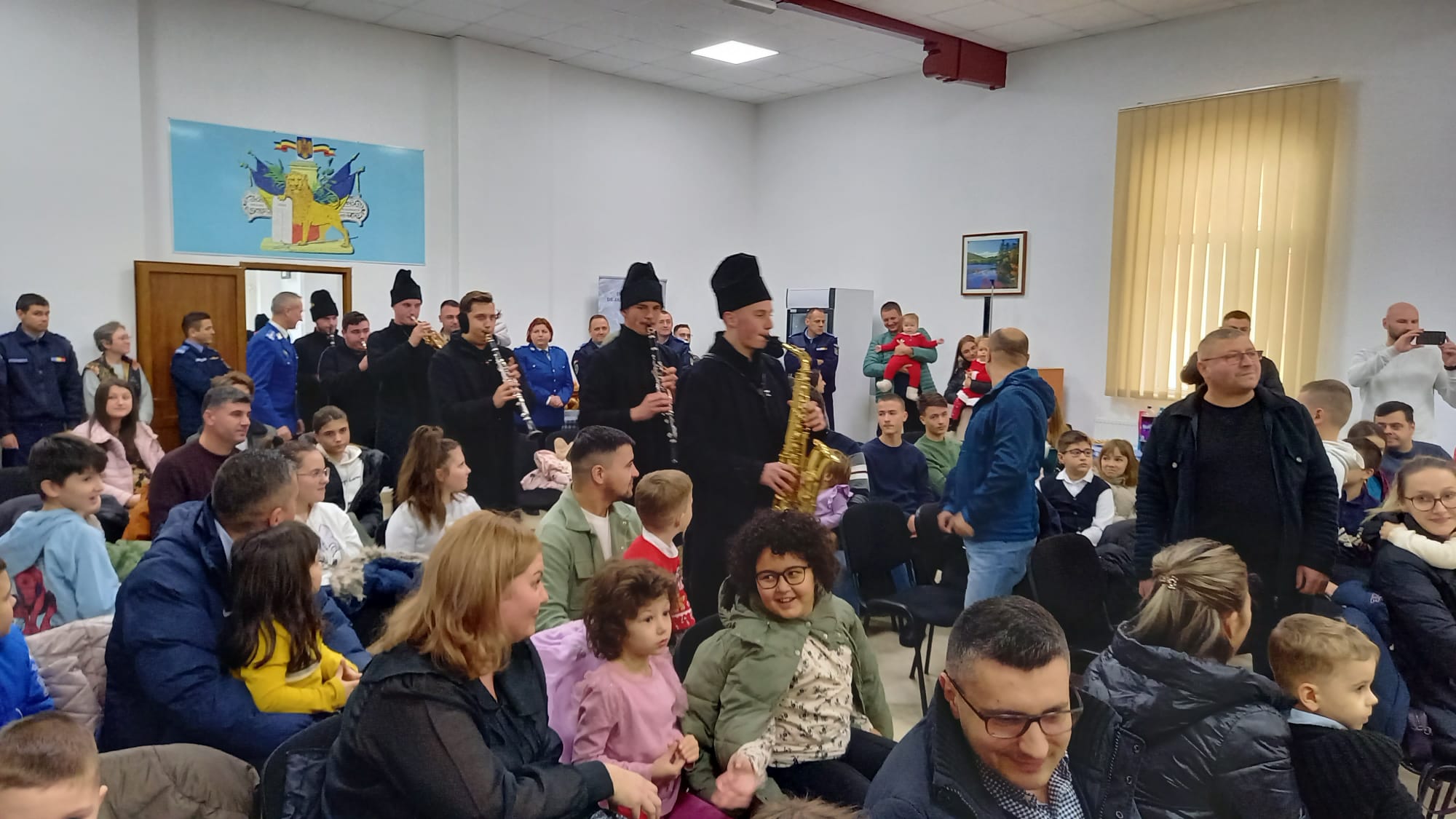 Prestația deosebită a ansamblului, care a încântat audiența la sediul Inspectoratului de Jandarmi Județean Botoșani, a fost urmată de vizita surpriză a lui Moș Crăciun, sosit cu sacul încărcat de daruri pentru copiii cuminți.