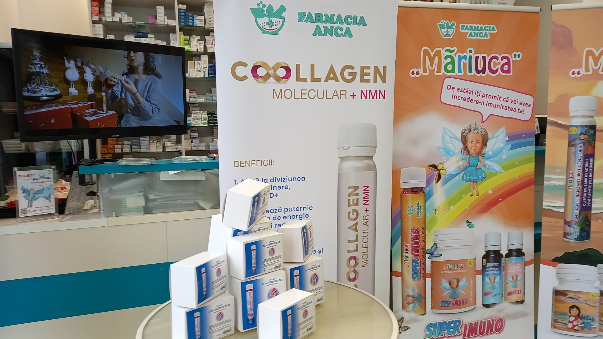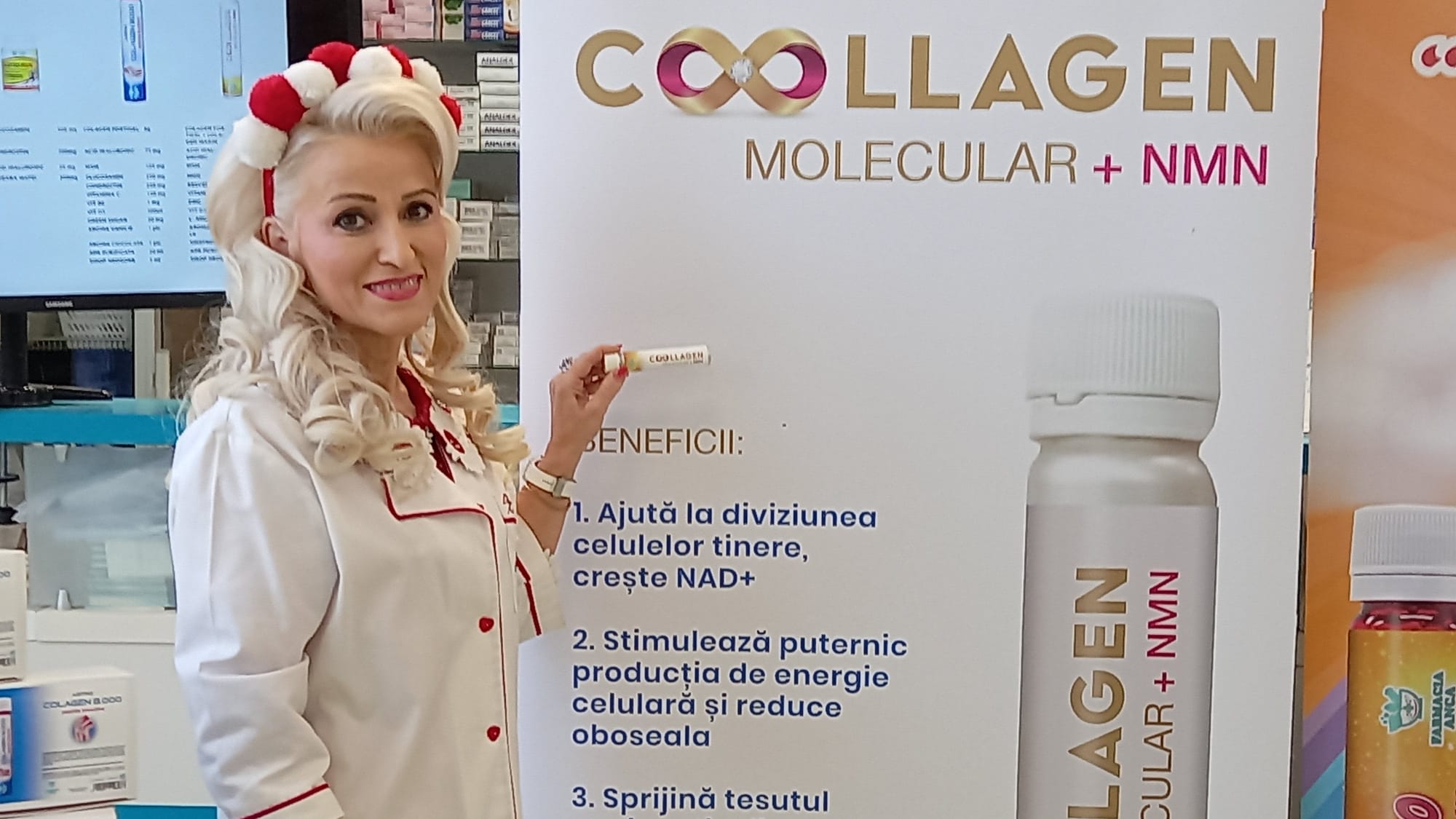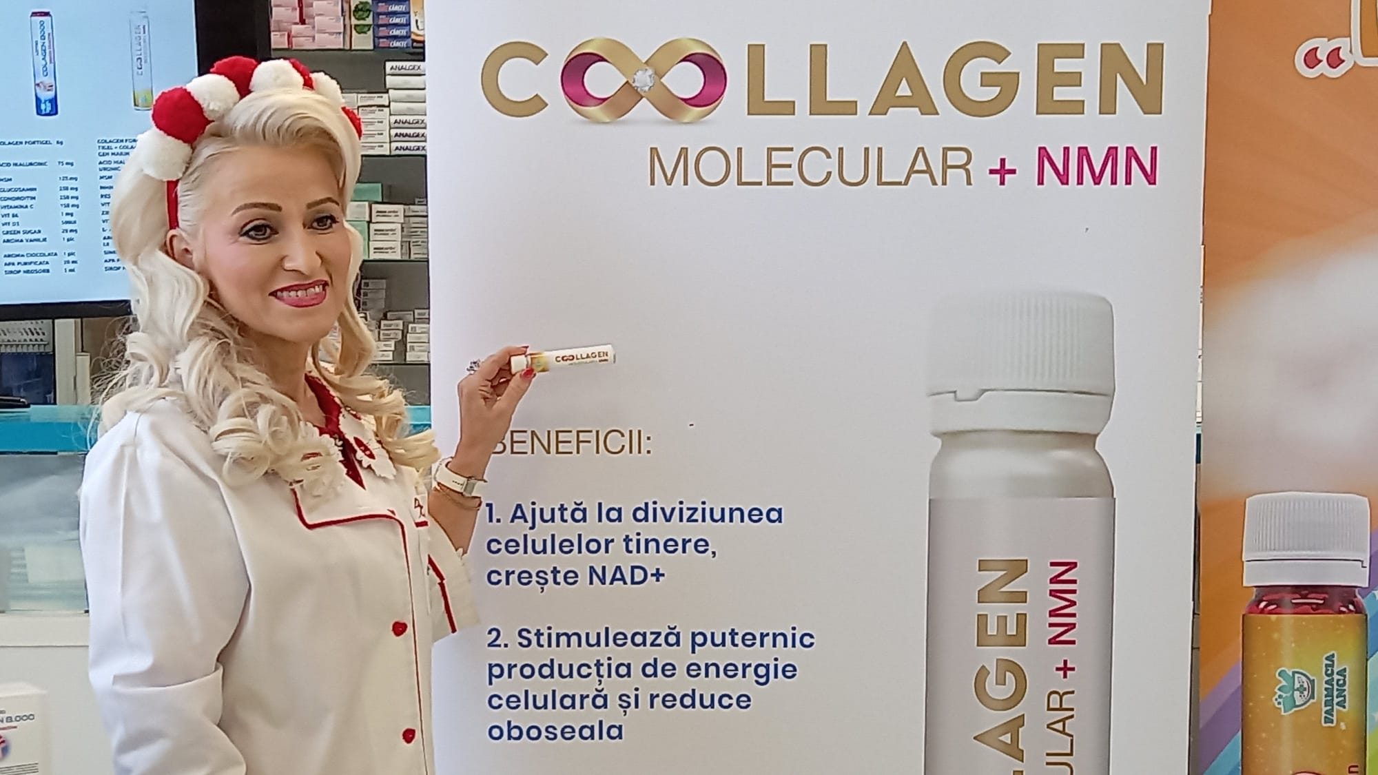 „Toți ne dorim ca în anul care vine să arătăm mai bine, pielea noastră să fie mult mai radiantă, țesuturile noastre, cartilagiile, și țesuturile noastre osoase să fie în susținerea întregului organism și, desigur, celula noastră nervoasă să fie susținută pentru activitățile pe care le avem de desfășurat zi de zi. Anul acesta, am venit cu un produs nou, se numește Coollagen Molecular, îmbunătățit cu NMN. Acest colagen, noi îl avem deja în farmacie sub formă de capsule, dar prin studii s-a observat că colagenul lichid este mult mai bine absorbit în organism față de forma în capsule sau în comprimate. Absorbția lui este cu 20% mărită, dar și susținerea celorlalți nutrienți prin compoziția acestui produs va face ca colagenul molecular să fie cea mai bună formulă și cel mai bun produs pe care dumneavoastră puteți să-l alegeți”, a declarat Anca Boldea.
