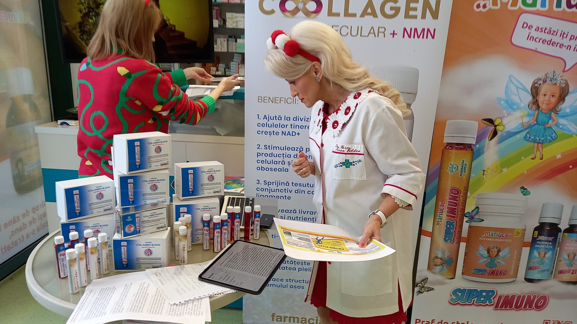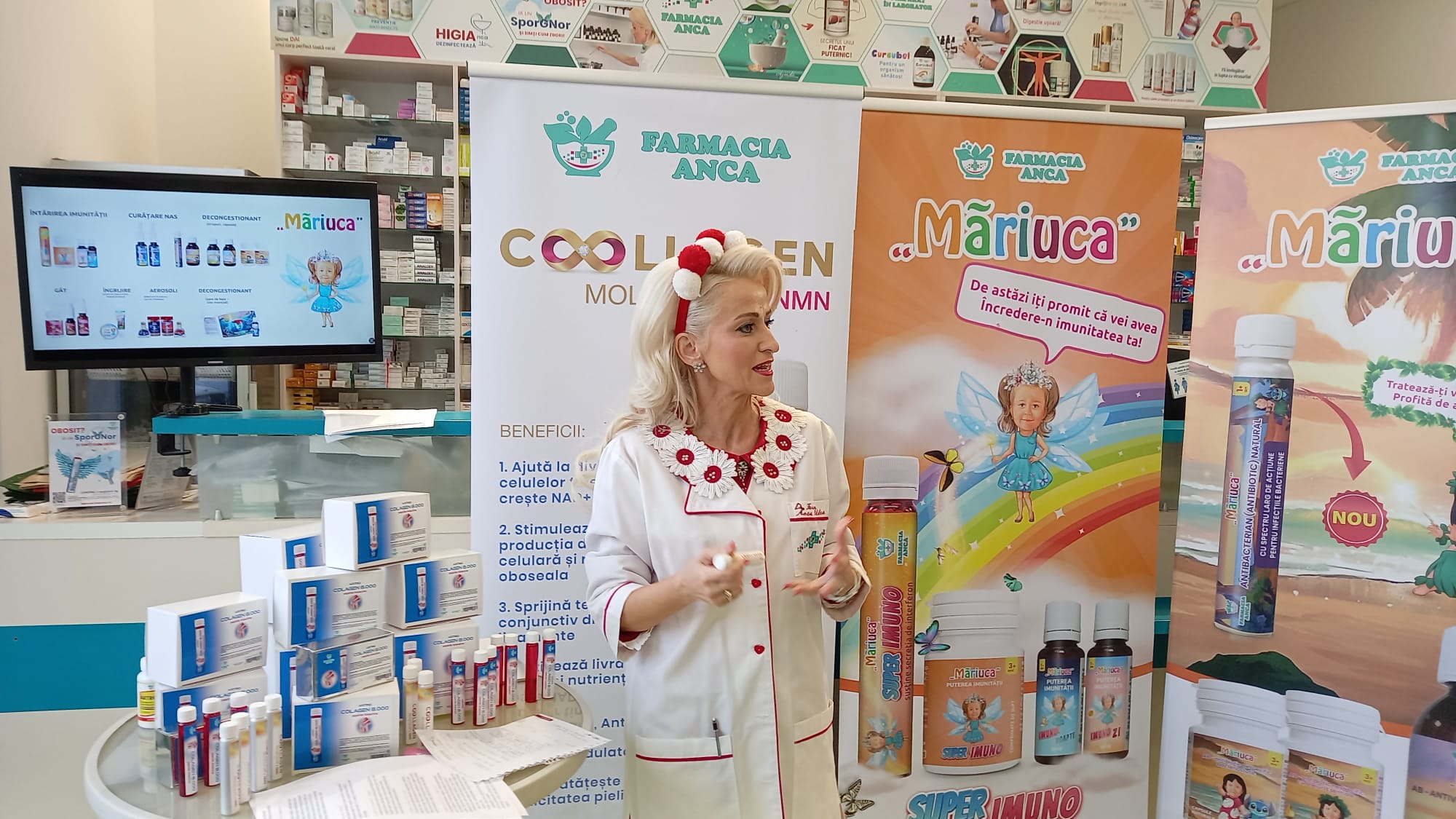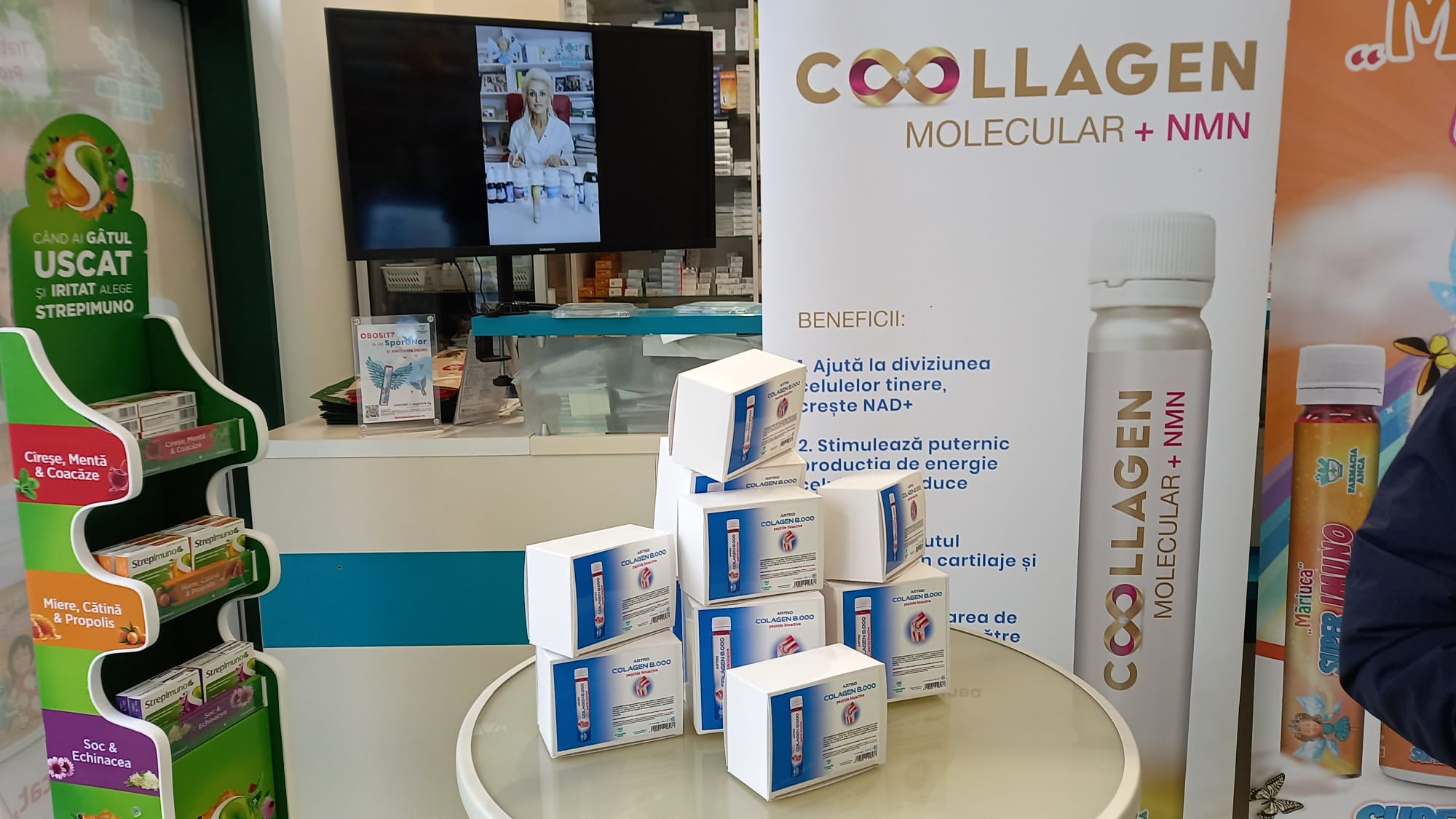 „Toți ne dorim ca în anul care vine să arătăm mai bine, pielea noastră să fie mult mai radiantă, țesuturile noastre, cartilagiile, și țesuturile noastre osoase să fie în susținerea întregului organism și, desigur, celula noastră nervoasă să fie susținută pentru activitățile pe care le avem de desfășurat zi de zi. Anul acesta, am venit cu un produs nou, se numește Coollagen Molecular, îmbunătățit cu NMN. Acest colagen, noi îl avem deja în farmacie sub formă de capsule, dar prin studii s-a observat că colagenul lichid este mult mai bine absorbit în organism față de forma în capsule sau în comprimate. Absorbția lui este cu 20% mărită, dar și susținerea celorlalți nutrienți prin compoziția acestui produs va face ca colagenul molecular să fie cea mai bună formulă și cel mai bun produs pe care dumneavoastră puteți să-l alegeți”, a declarat Anca Boldea.