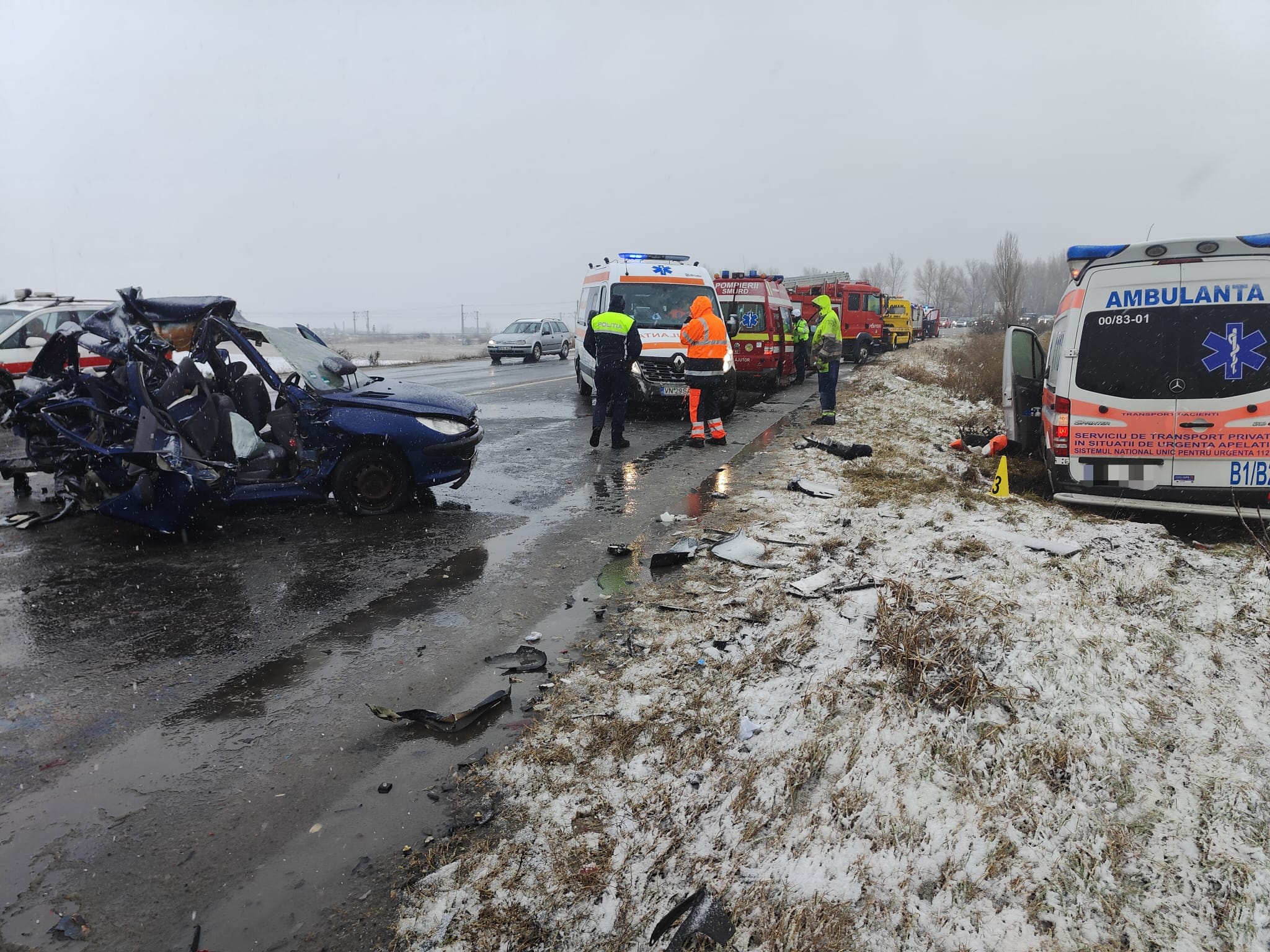 „Din primele cercetări efectuate la faţa locului rezultă că accidentul, în care au fost implicate două autovehicule, dintre care o ambulanţă privată ce aparţine unui spital din Bucureşti, s-a produs pe fondul neadaptării vitezei la condiţiile de drum, derapare şi pătrunderea pe contrasens. Din nefericire, a rezultat decesul pasagerului dreapta faţă din autoturism, rănirea gravă a pasagerului stânga spate din autoturism şi rănirea uşoară a altor trei persoane, dintre care două cadre medicale din ambulanţa privată şi una din autoturism – conducătorul auto al acestuia”, a transmis purtătorul de cuvânt al IPJ Vrancea, Cătălina Murariu.