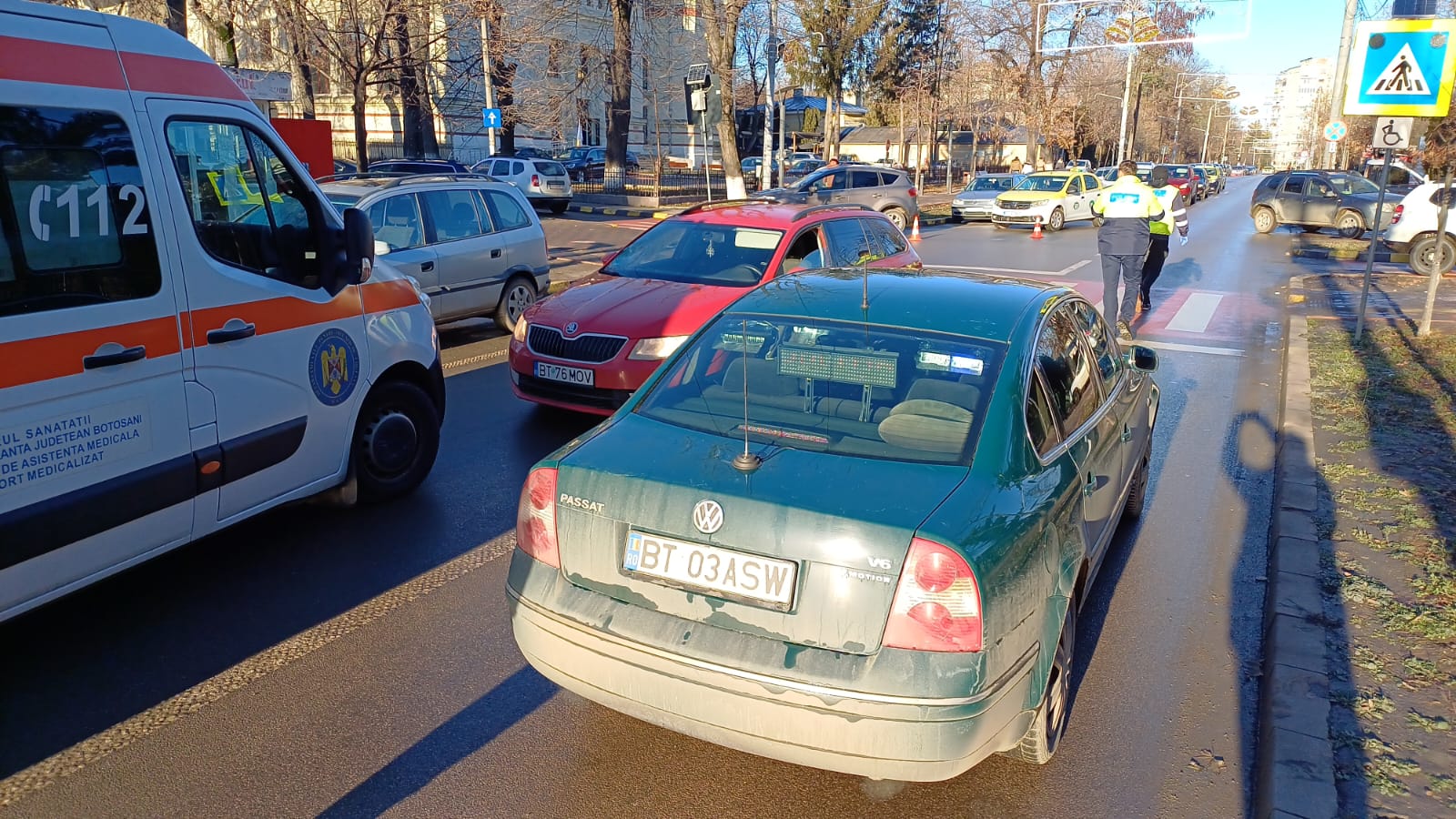 Un accident rutier a avut loc în ultima zi din 2024, în municipiul Botoșani. Un bărbat a fost lovit de o mașină, marți, chiar pe trecerea de pietoni. Evenimentul a avut loc pe Bulevardul „Mihai Eminescu”, când un bărbat de 85 de ani s-a angajat în traversarea străzii regulamentar, pe trecerea de pietoni, dar a fost lovit de un autoturism Skoda.