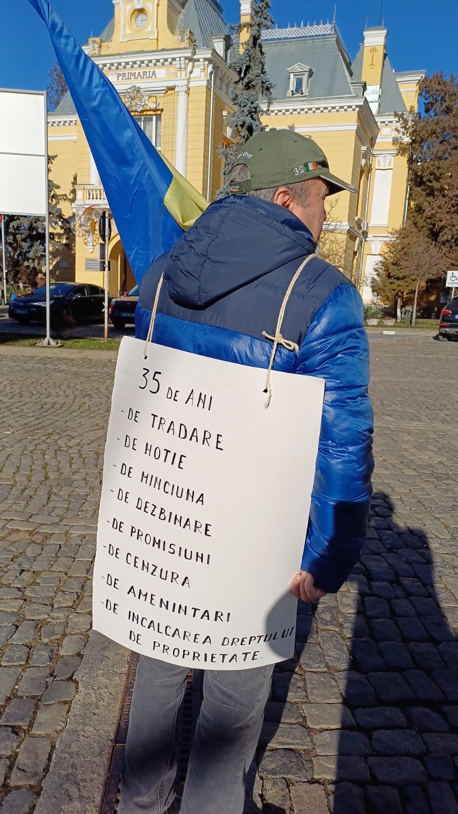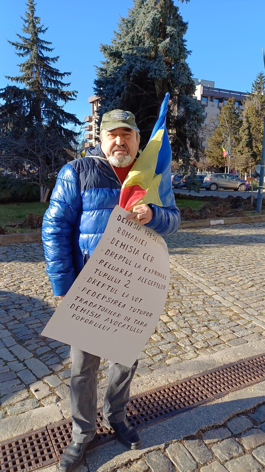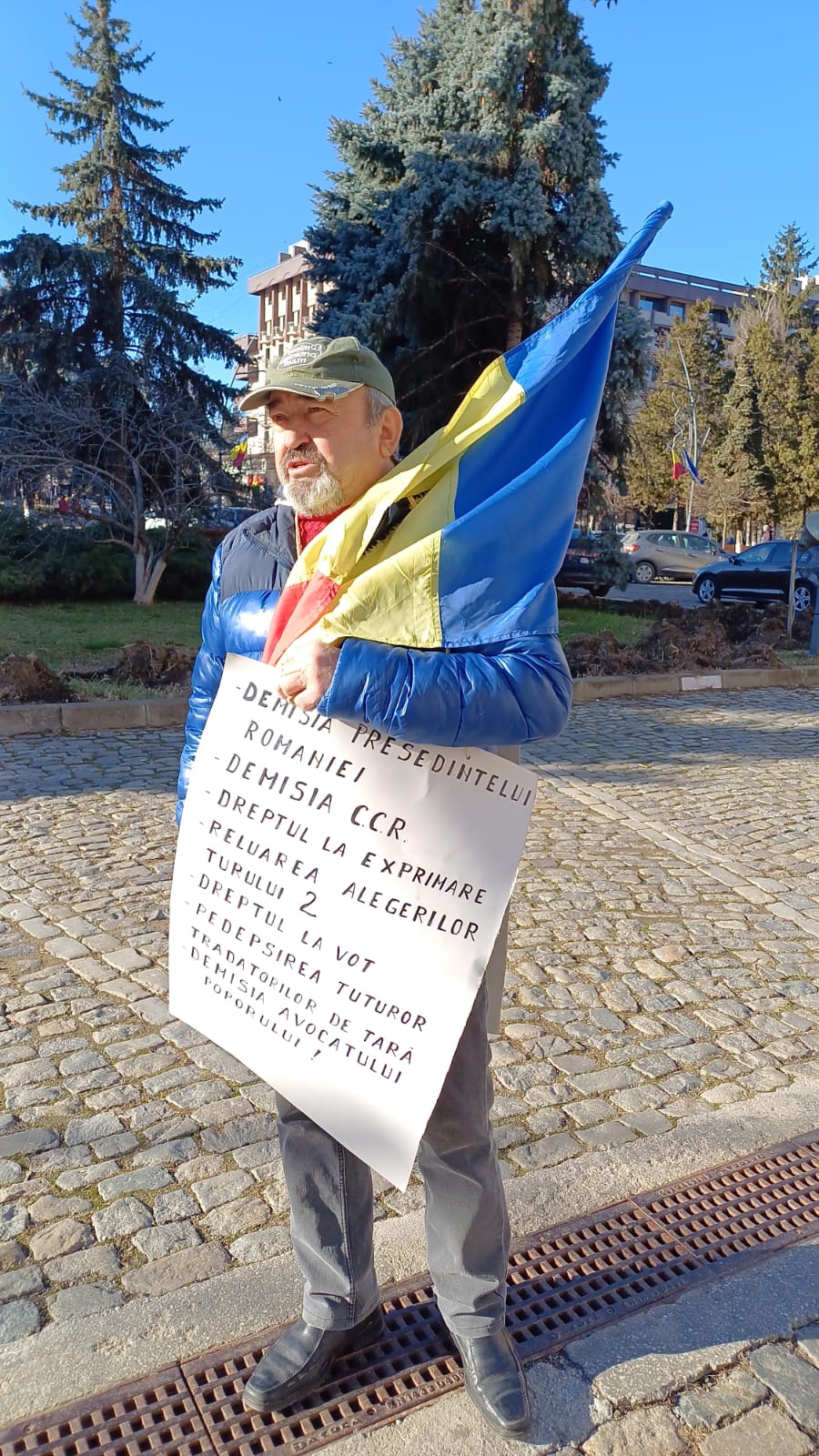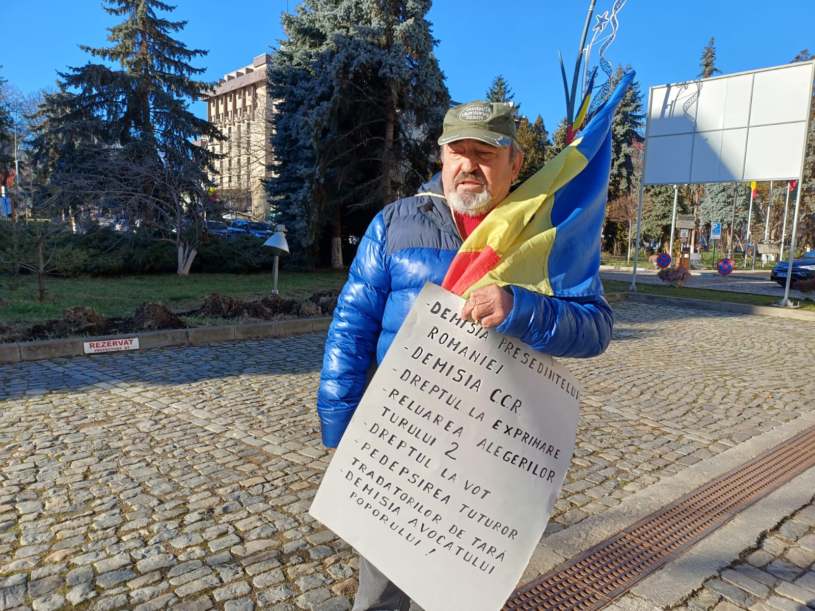 Anul a început cu un protest la Botoșani. Un bărbat de 69 de ani, din Botoșani, a mers în fața Prefecturii, joi, pentru a-și arăta nemulțumirile. Ștefan Sîrghia, de 69 ani, luptător la Revoluție la Botoșani, și-a etalat nemulțumirile în fața Instituției Prefectului, sub ochii curioșilor.