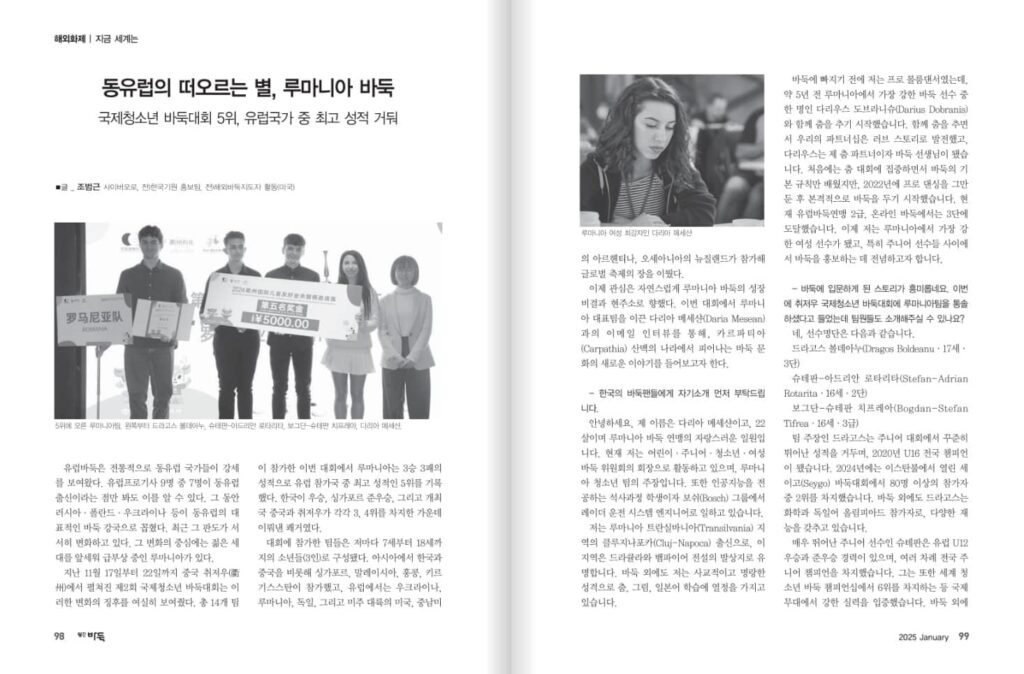 Sub titlul: „Rising star-ul Europei de Est: Go-ul românesc” este publicat un interviu amplu despre echipa de juniori a României, care a obținut cel mai bun rezultat dintre toate țările europene participante, clasându-se pe locul 5. După 4 zile de competiție, echipa noastră a reușit o mare performanță, clasându-se pe locul 5, fiind prima echipă europeană și depășind țări precum Statele Unite sau Malaezia.