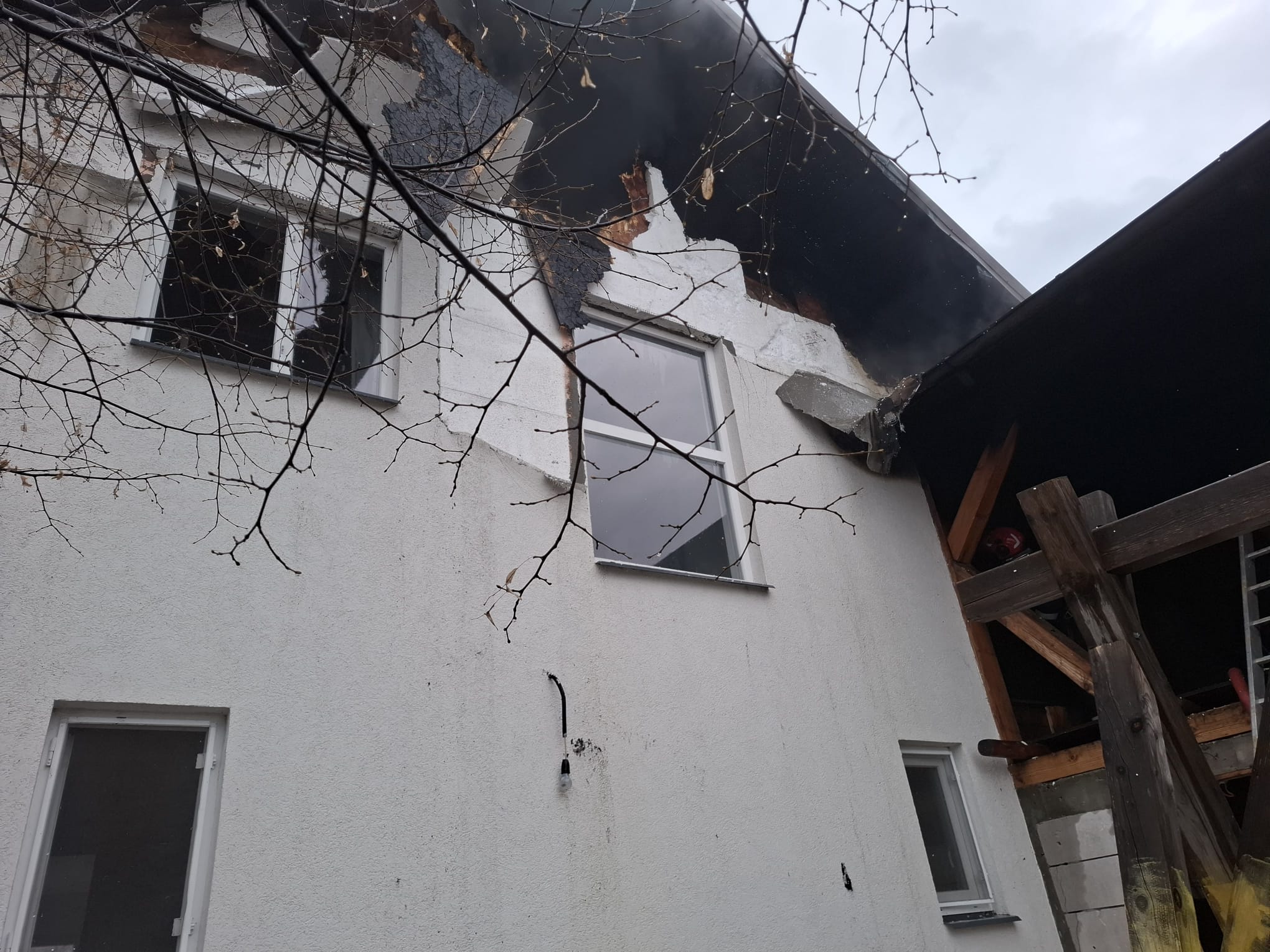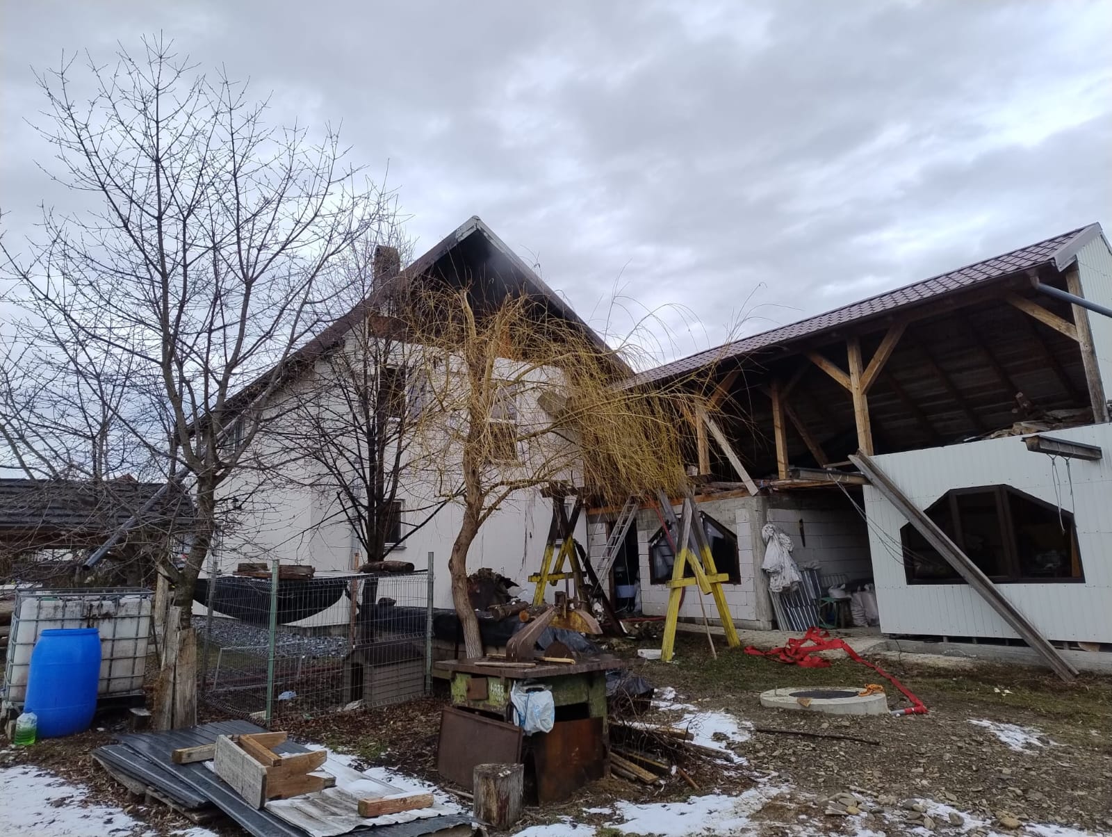 Flăcările se manifestă la acoperișul casei de locuit și la două anexe gospodărești, pe o suprafață de aproximativ 400 de metri pătrați.