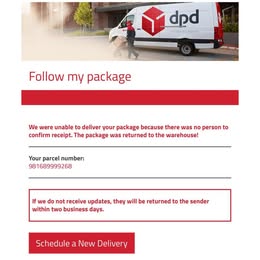 Atacatorii trimit mesaje text care par să provină de la o sursă de încredere, cum ar fi o companie de livrare, ca în exemplul din imagini. Mesajul conține un link care, odată accesat, direcționează victima către un site web fals, unde infractorii susțin că livrarea unui colet fictiv nu a putut fi efectuată și că acesta trebuie livrat din nou.