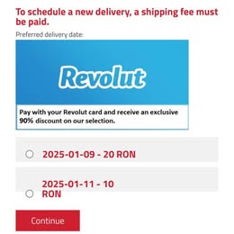 Pentru această nouă livrare, se solicită plata unei presupuse taxe de livrare, prin intermediul Revolut. Această plată va ajunge, în realitate, direct în conturile atacatorilor, potrivit Observator