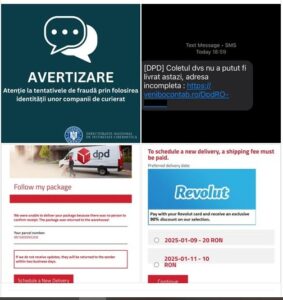 Potrivit unui anunţ al specialiștilor DNSC, continuă campania de fraudă prin folosirea identității unor companii de curierat. „Pe măsură ce cumpărăturile online devin tot mai frecvente, primim din ce în ce mai multe notificări, mesaje și email-uri de la servicii de curierat sau Poștă. Infractorii cibernetici profită de această rutină și trimit SMS-uri pretinzând că sunt din partea unor astfel de entități pentru a ne întinde capcane„, avertizează Directoratul Naţional de Securitate Cibernetică.