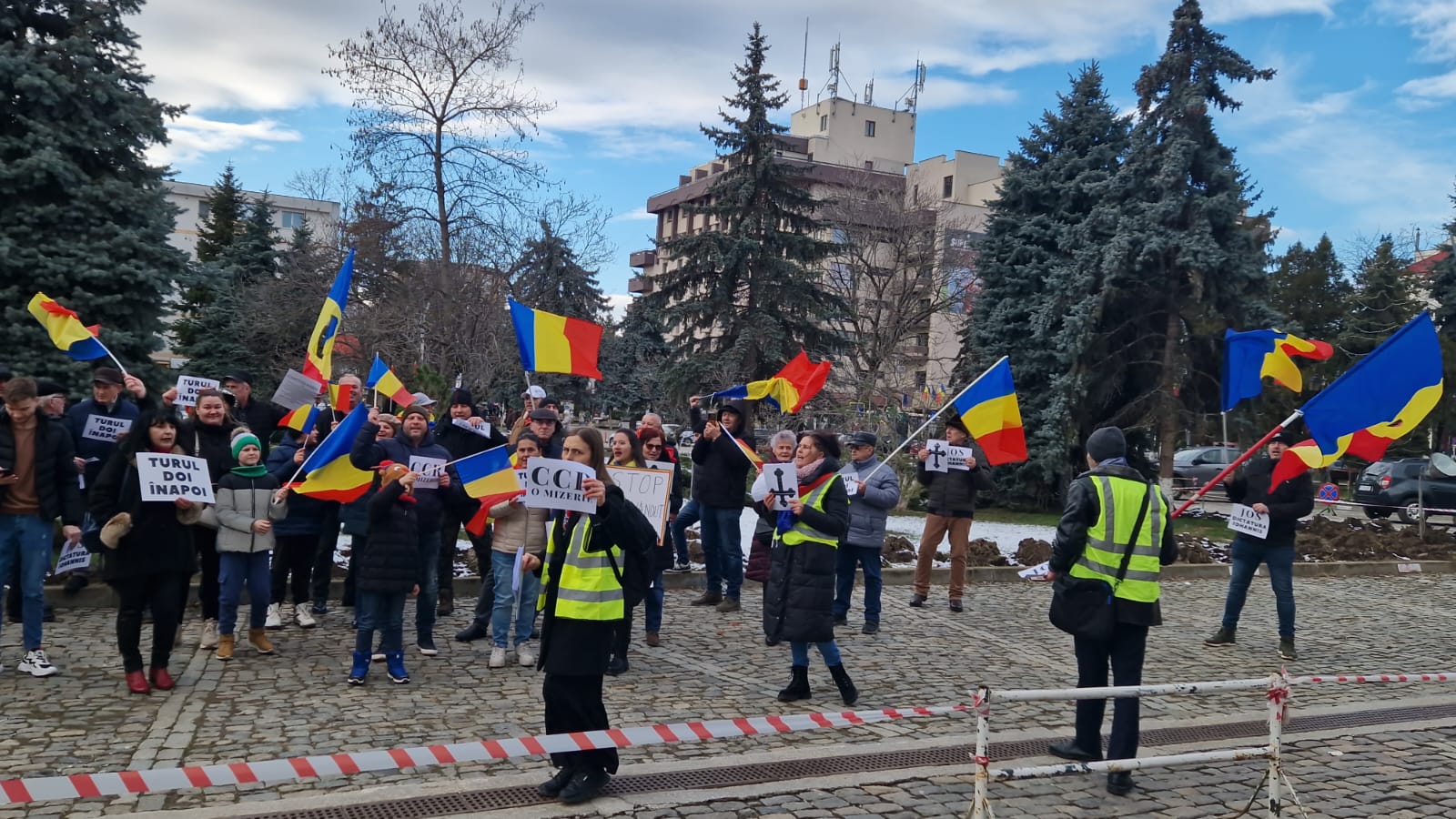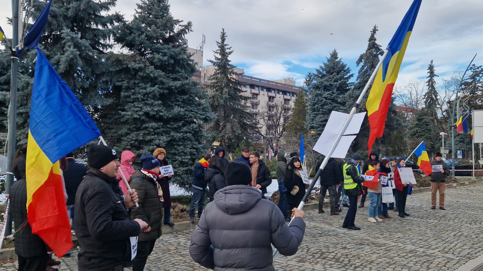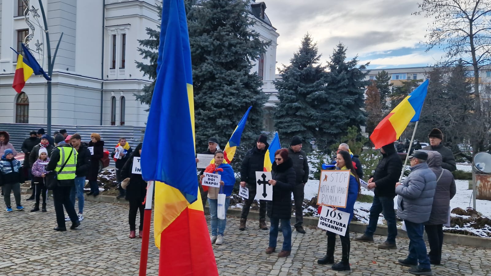 FOTO & VIDEO Protest, astăzi, la Botoșani! Zeci de persoane cu pancarte cu cruci și mesaje împotriva anulării alegerilor prezidențiale