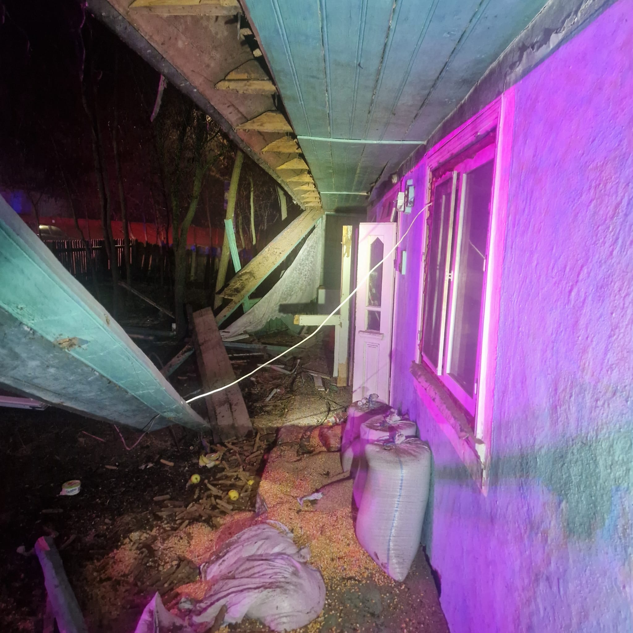 Explozia nu a fost urmată de incendiu, dar casa era avariată. Proprietarul a fost găsit în interiorul locuinței, era conștient, prezenta arsuri la nivelul feței și mâinilor. Acesta a fost scos din imobil de pompieri și preluat la echipajul SAJ. Ulterior, bărbatul a fost transportat la spital pentru îngrijiri medicale de specialitate.