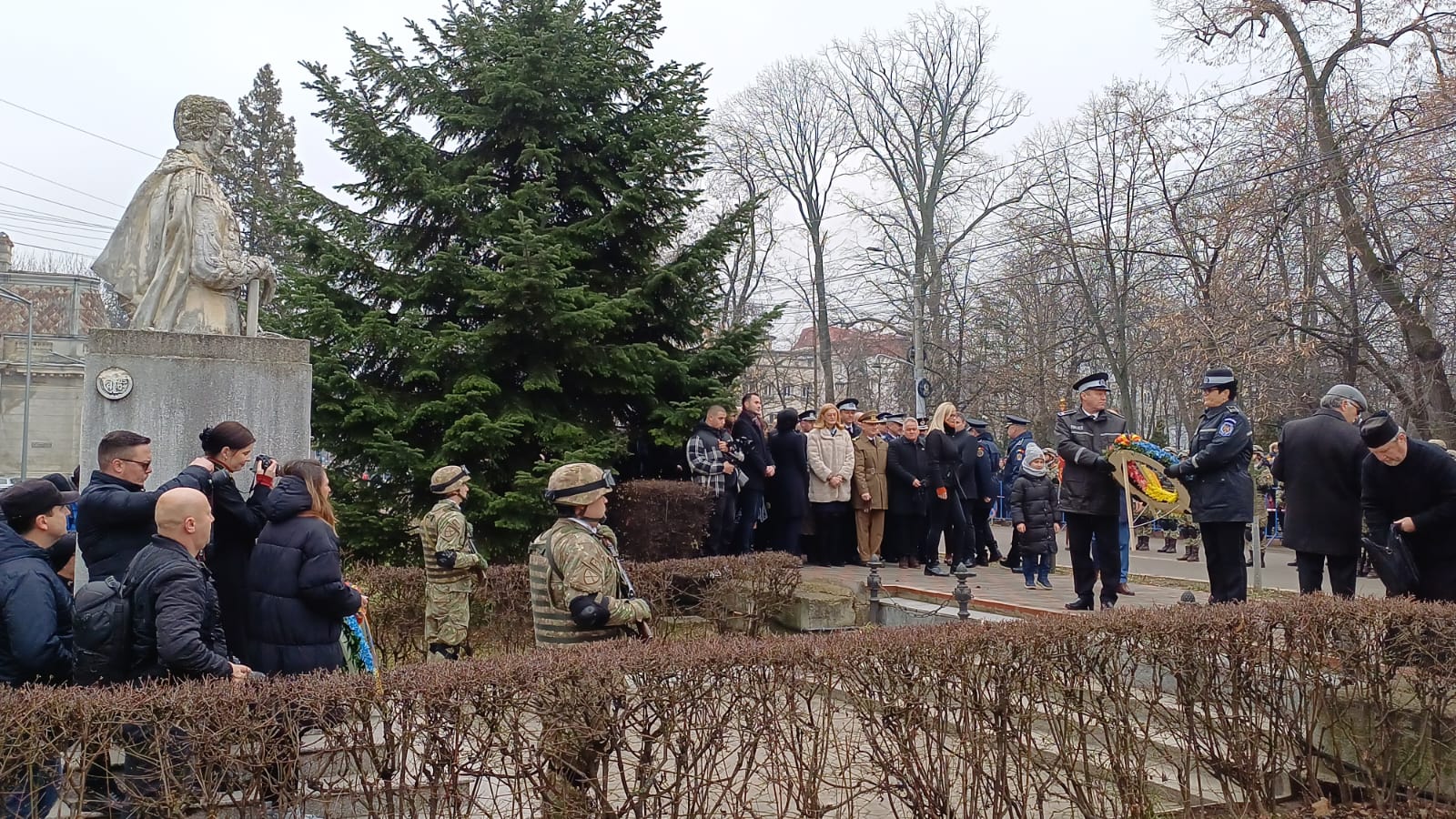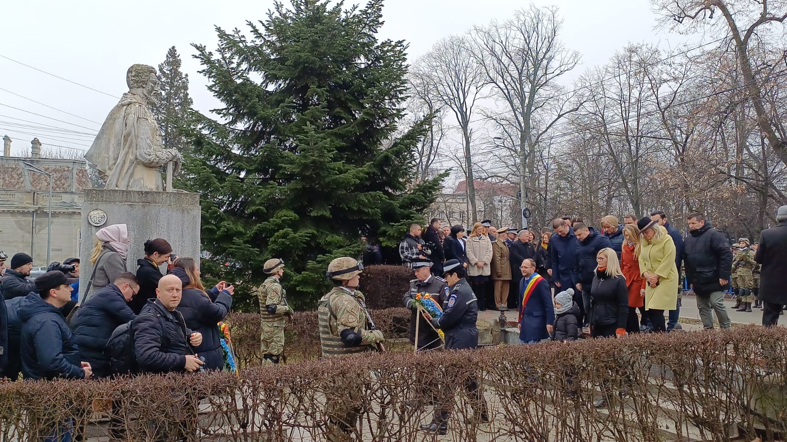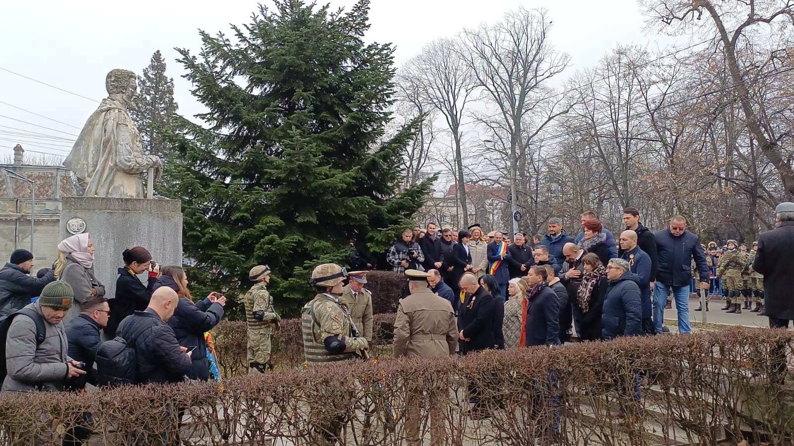 După intonarea Imnului Naţional al României, oficierea serviciului religios și depunerile de coroane și jerbe de flori în acordurile „Imnului Eroilor” la Monumentul Domnitorului Alexandru Ioan-Cuza, a urmat defilarea detaşamentului de onoare. Nu a lipsit hora unii.