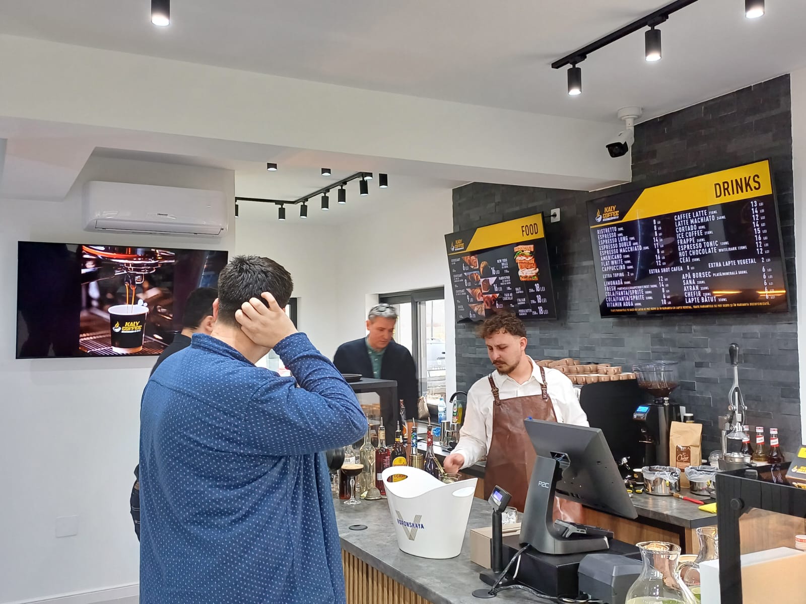 Unul dintre cei mai buni barista din România, Răzvan Pele, a fost prezent la eveniment și a pregătit cafeaua pentru invitați. Duminică, cafeneaua va fi deschisă publicului larg, de la ora 06.00 la 22.00.