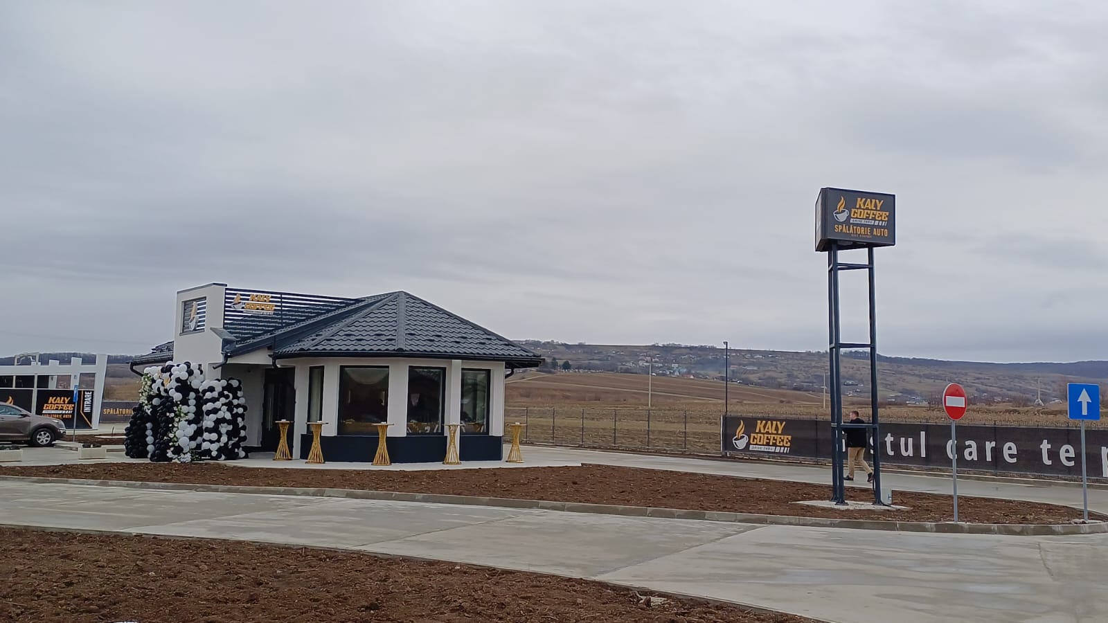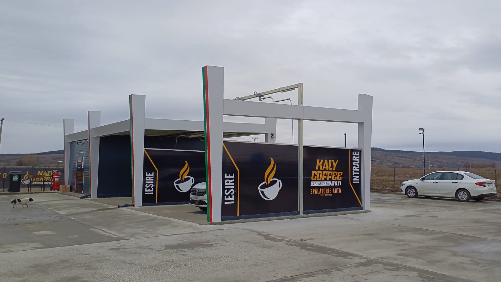 Kaly Caffee este construit ca un complex, care va mai cuprinde și o spălătorie auto de tip self wash, dar și un aparat returo, care preia PET-urile.