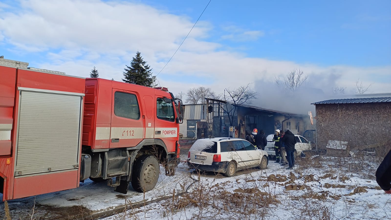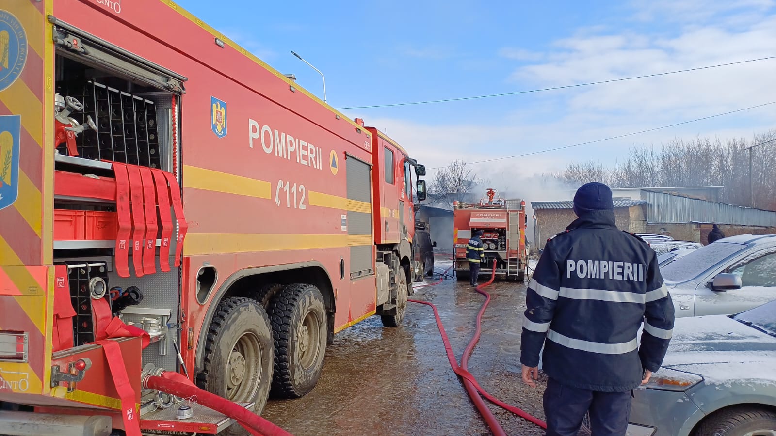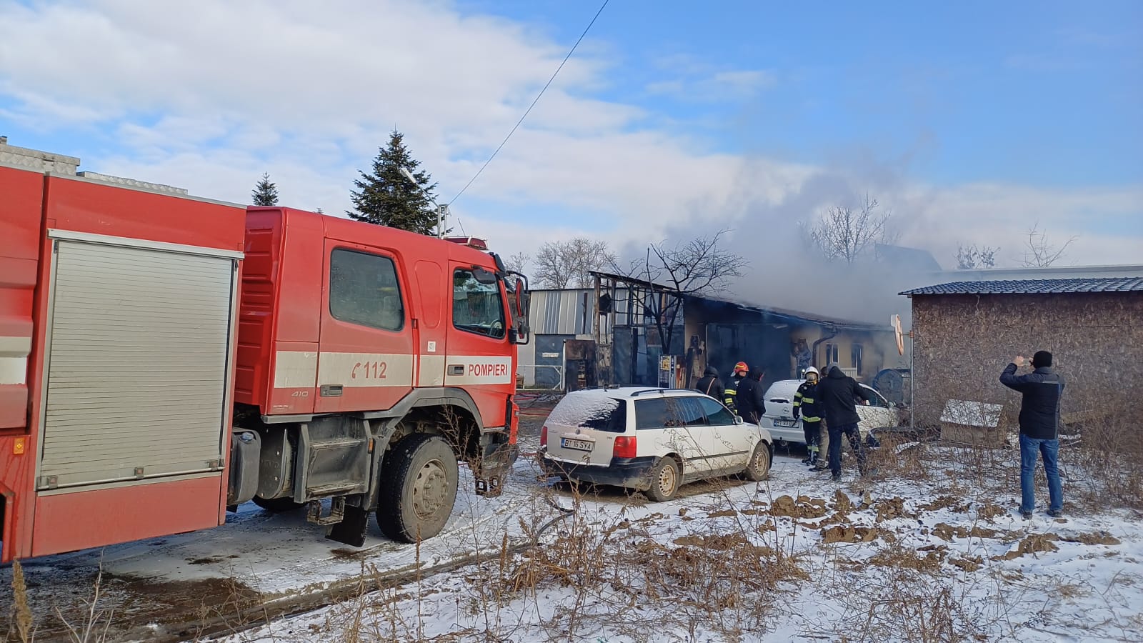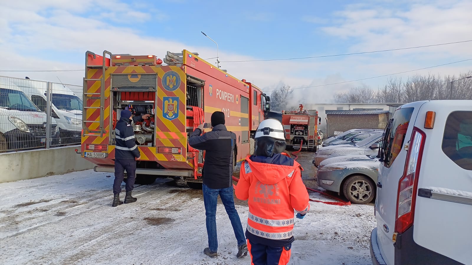 Incendiul s-a produs la un service auto din vecinătatea unei firme de curierat de pe Pacea. O mașină era în garaj, dar a fost scoasă din calea flăcărilor.