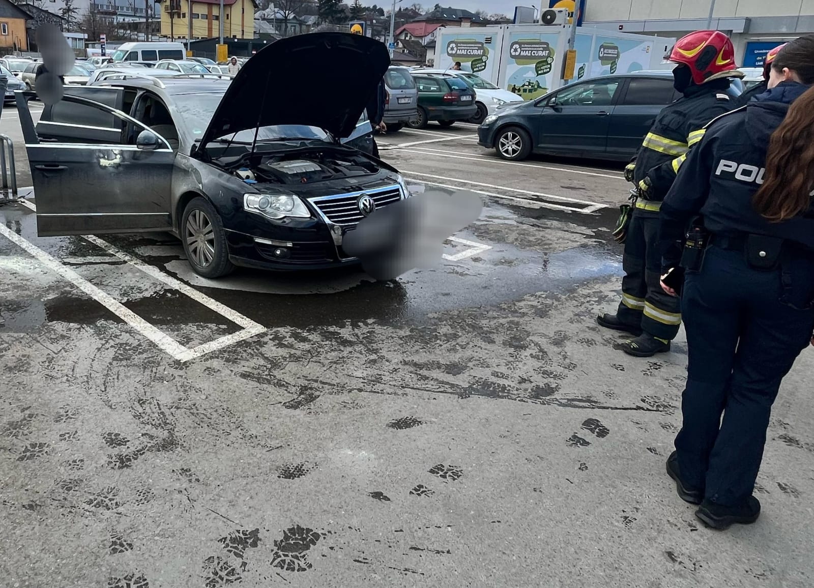 Un autoturism a luat foc, luni după-amiază, în parcarea unui supermarket din municipiul Dorohoi, județul Botoșani. Când s-a produs evenimentul, proprietarul se afla la cumpărături. Alarma a fost dată de clienții magazinului, îngrijorați de faptul că flăcările s-ar putea extinde la celelalte mașini aflate în parcare.