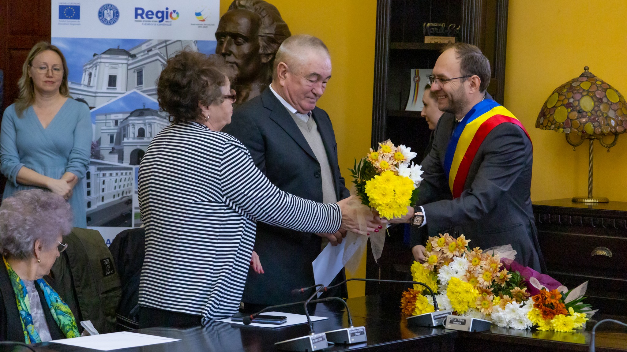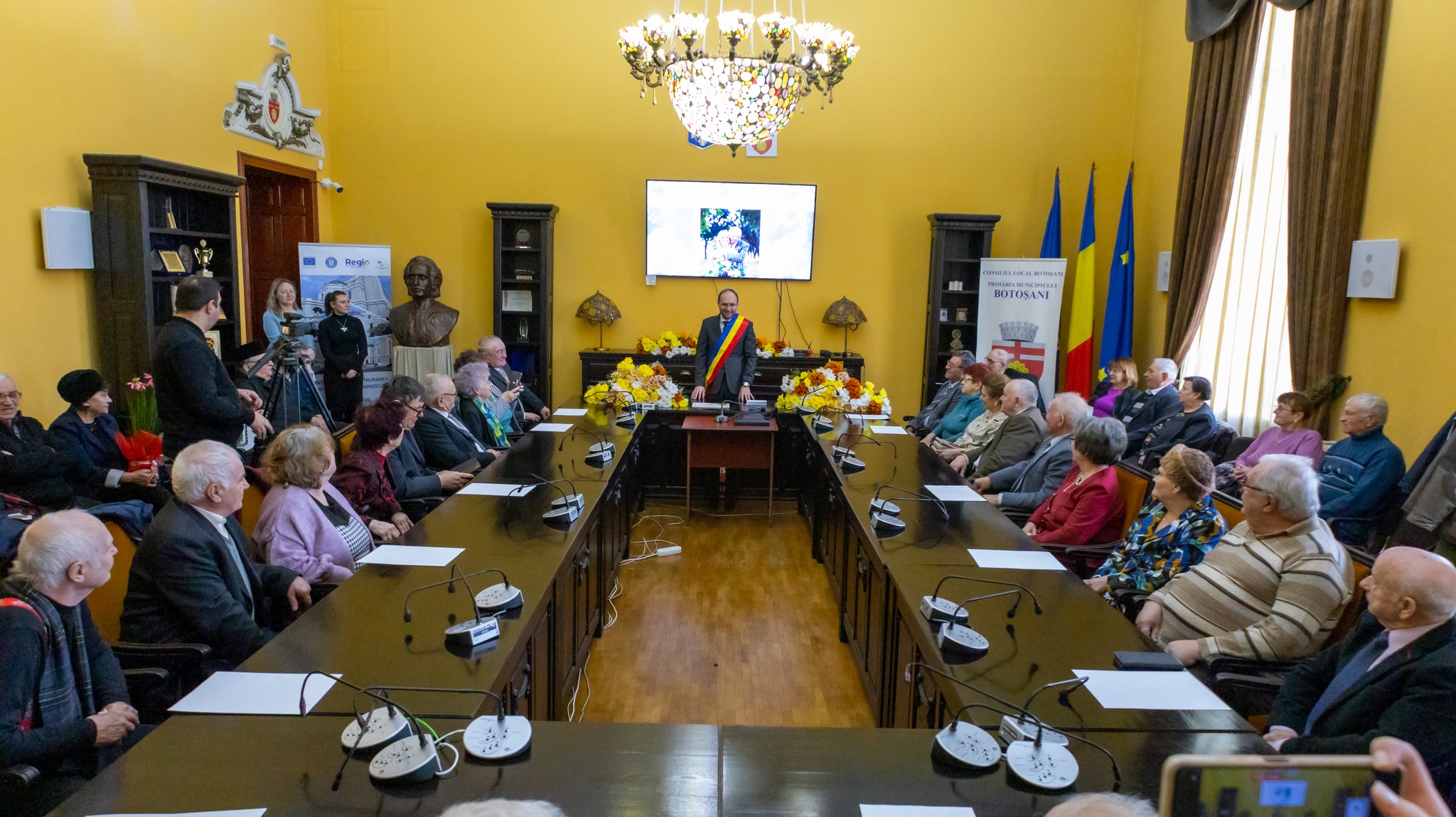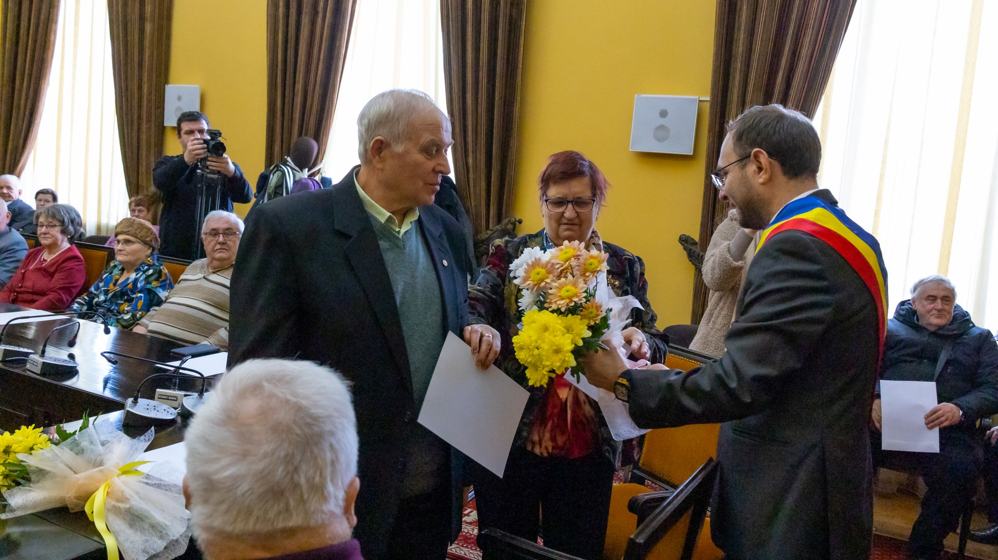 Ceremonia de premiere a celor 32 de cupluri care au sărbătorit Nunta de Aur și Nunta de Diamant a avut loc în sala Mihai Eminescu a Primăriei Botoșani.