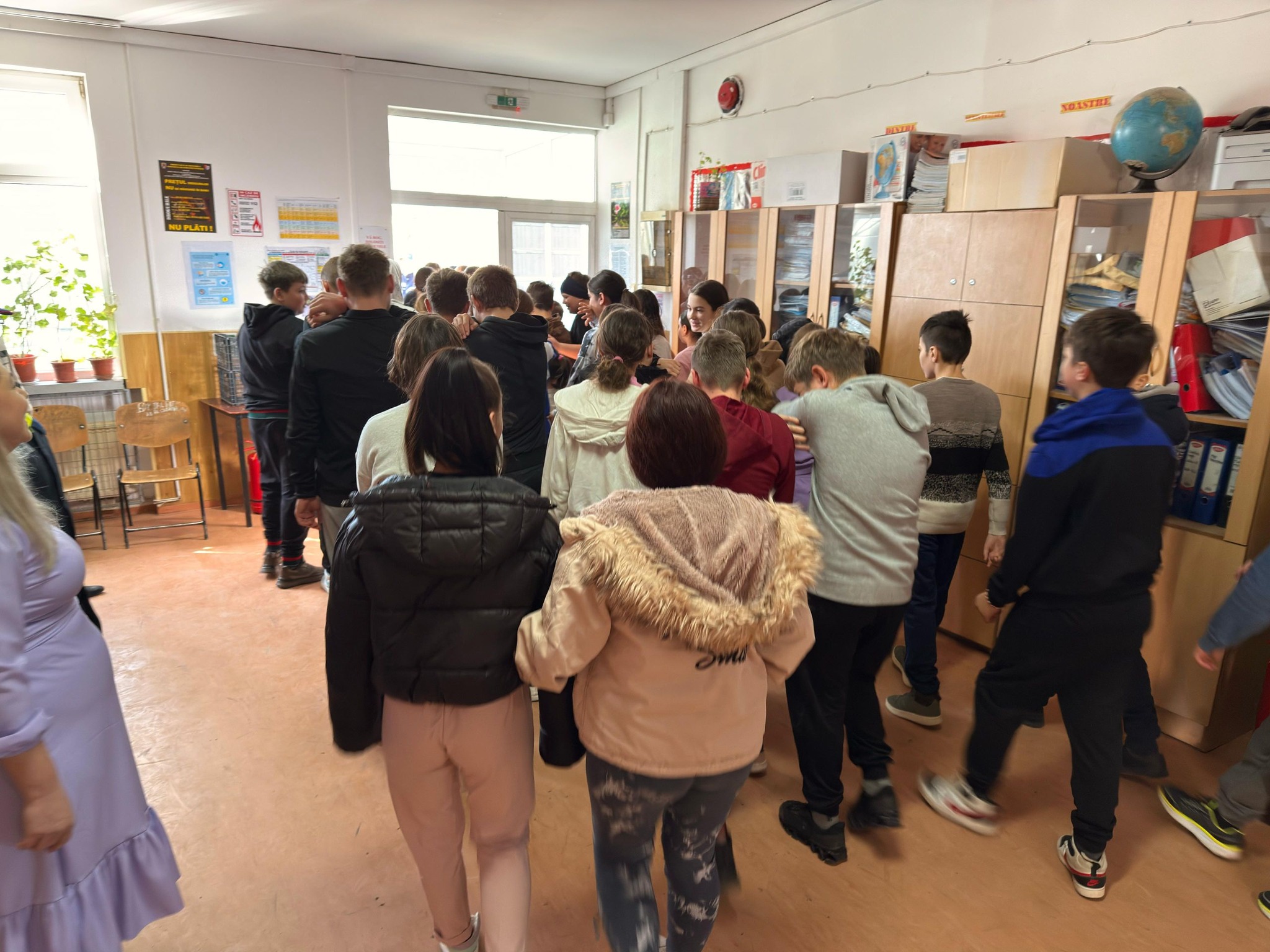 La auzul semnalelor acustice, elevii au reacționat imediat și, însoțiți de profesori, au ieșit din clase în mod organizat și s-au deplasat la locul de adunare.