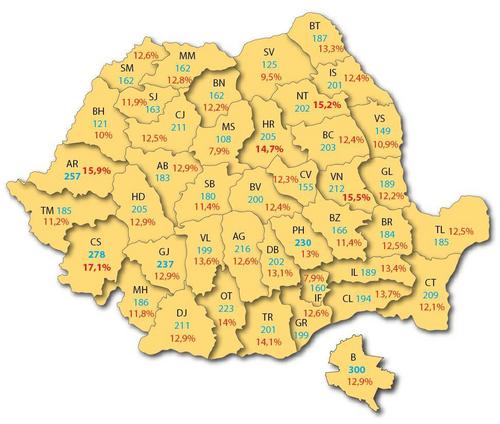 Judeţul care va cunoaşte cea mai mare creştere procentuală a salariului mediu în 2014 faţă de nivelul din 2011 va fi Caraş-Severin, cu 17,1%.