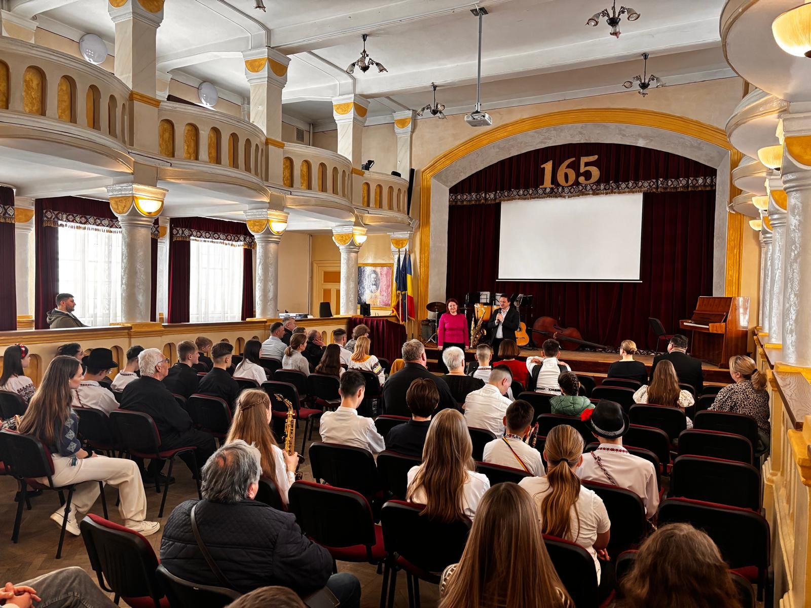 Şi, fiindcă muzica este cel mai desăvârşit translator al vibraţiei sufletului omenesc, vineri, 7 martie 2025, ora 11, Aula Colegiului Naţional „A. T. Laurian” Botoşani a găzduit recitalul instrumental „Conexiuni artistice transfrontaliere”, din cadrul proiectului de schimb de experienţă şi bune practici „Ipostaze cultural-artistice în interpretarea muzicală”.