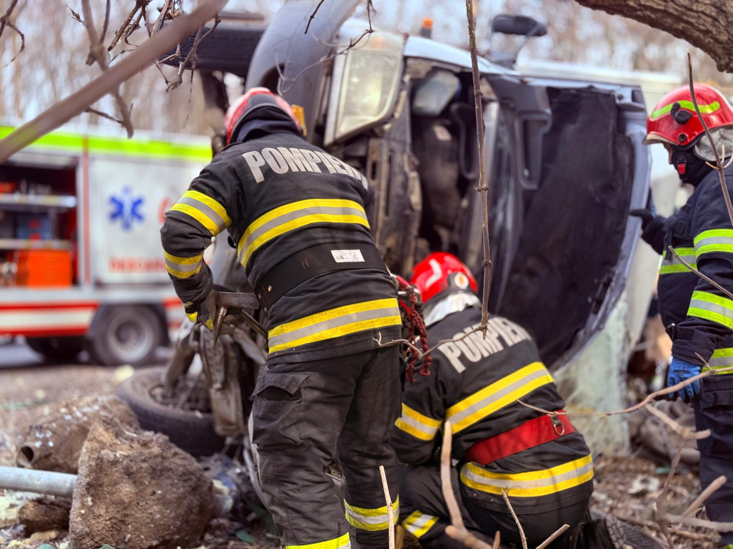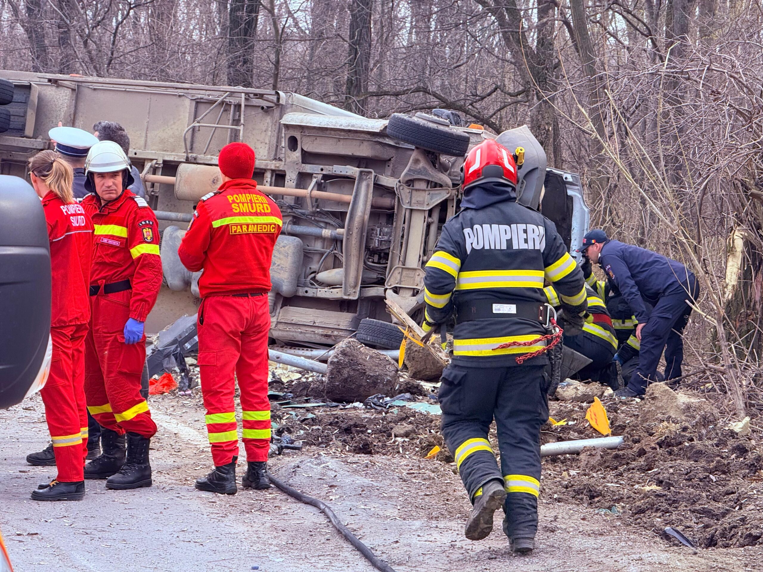 Șoferul autoutilitarei a fost rănit, fiind preluat de echipajul medical și transportat la spital pentru îngrijiri de specialitate. Pompierii au asigurat măsurile de prevenire a incendiilor, fiind deconectate bornele bateriilor.