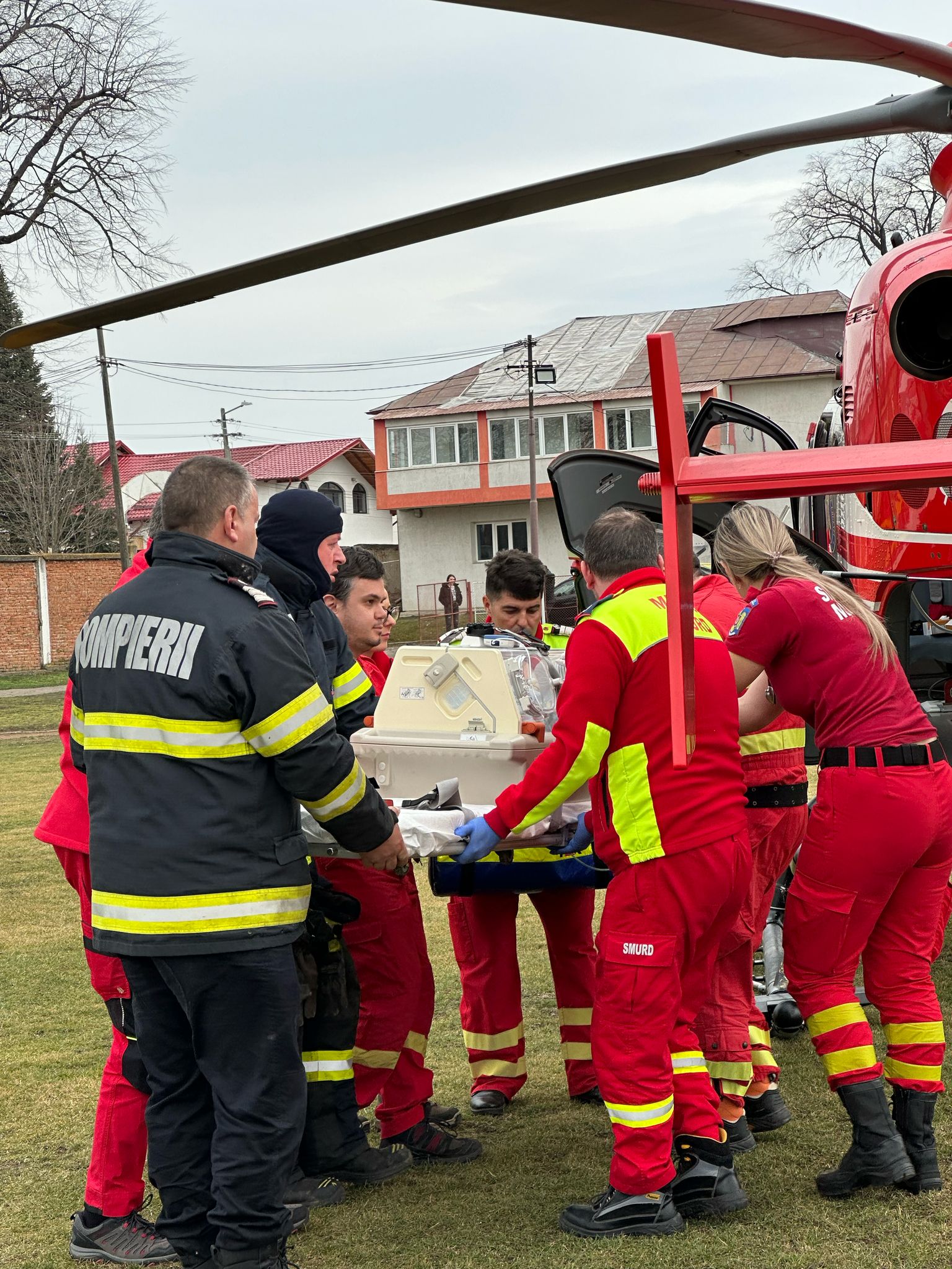 Un bebeluș de doar o lună, din județul Botoșani, aflat în stare gravă din cauza unor afecțiuni pulmonare, a fost transportat de urgență la Iași, cu un elicopter SMURD.