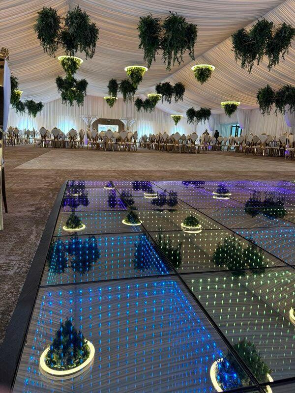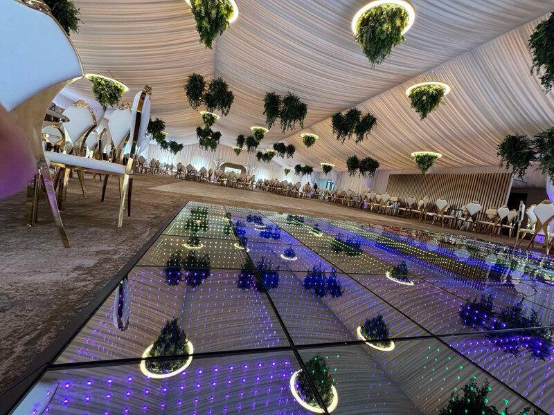 Prima sală de evenimente a complexului impresionează printr-o scenă spectaculoasă, dotată cu podea realizată din panouri LED, unică în zonă, care va transforma fiecare moment artistic într-un spectacol vibrant. Spațiul poate găzdui elegant între 300 și 360 de invitați, având flexibilitatea de a fi amenajat și pentru evenimente mai intime, chiar și de aproximativ 100 de persoane, păstrând atmosfera distinsă și confortabilă.