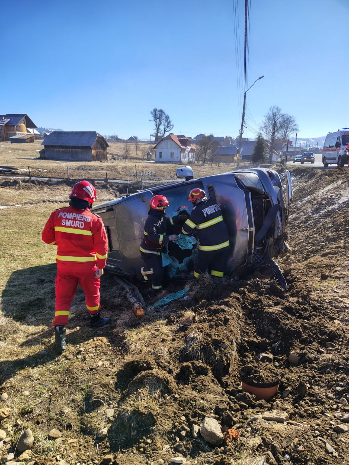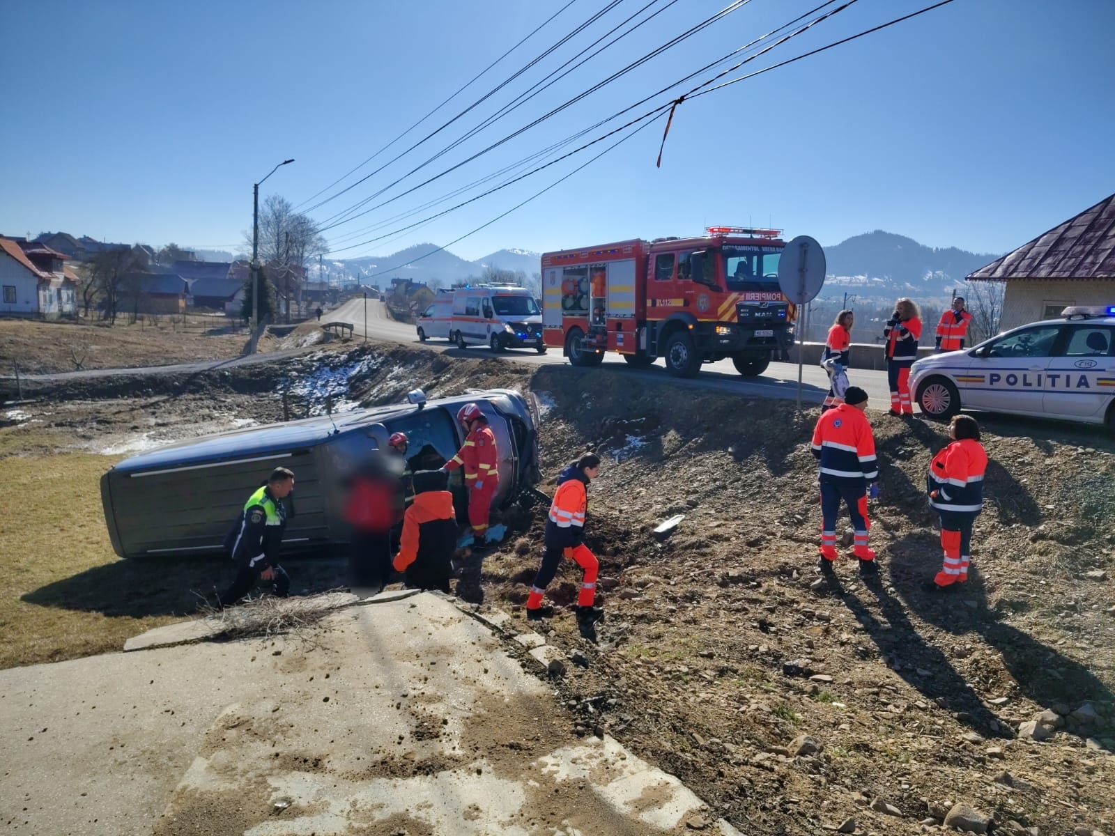 Un microbuz s-a răsturnat în afara părții carosabile, pe raza localității Dealu Floreni, comuna Dorna Candrenilor. Au intervenit pompierii militari, cu două autospeciale cu accesorii pentru descarcerare și o ambulanță SMURD, cu sprijinul a două echipaje SAJ.