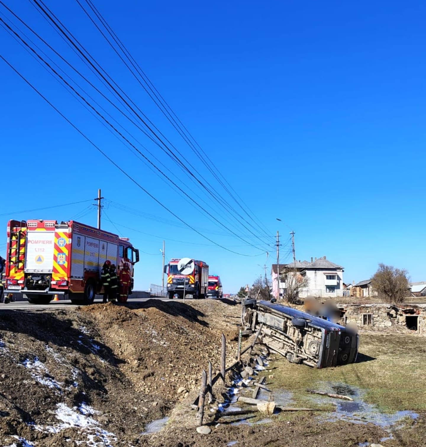 În microbuz se aflau cinci persoane, neîncarcerate, conștiente și cooperante. Acestea au fost monitorizate de către echipajele sosite la locul intervenției și doar un adolescent, în vârstă de 16 ani, a necesitat îngrijiri medicale. Ulterior, băiatul a refuzat transportul la o unitate spitalicească.