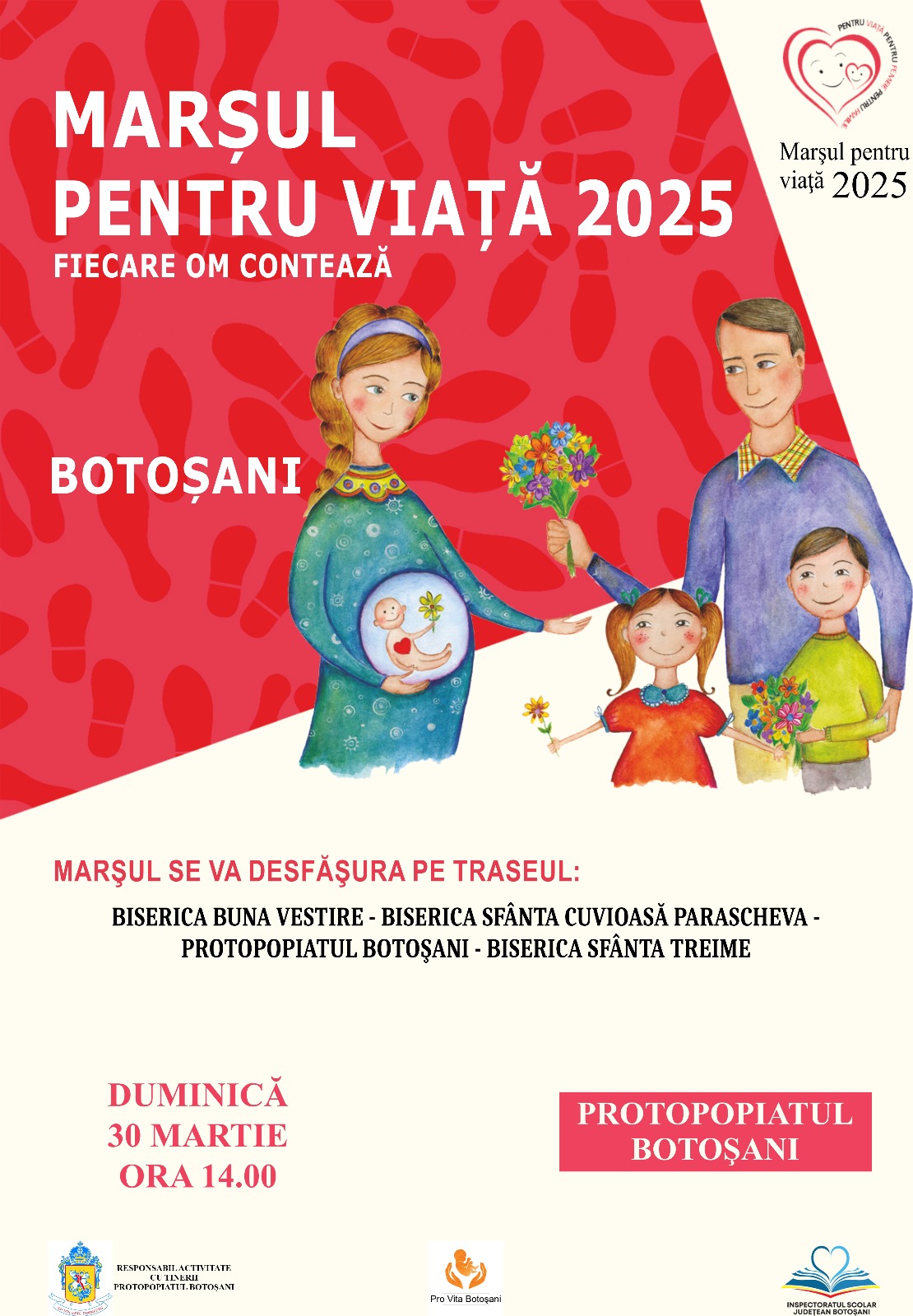 Marșul pentru viață va avea loc și anul acesta la Botoșani. Evenimentul a fost programat pentru duminică, 30 martie 2025, de la ora 14.00, și are ca scop susținerea femeilor însărcinate aflate în dificultate.