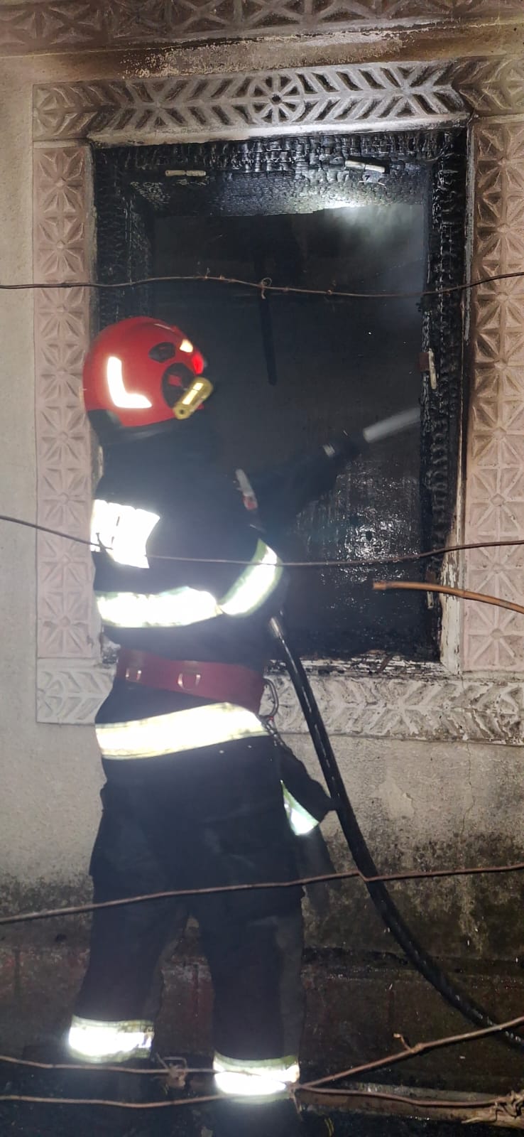 Aceștia au constatat faptul că ardeau bunurile dintr-o cameră și exista pericolul de propagare a flăcărilor la întreaga construcție. Întrucât existau informații că proprietarul, în vârstă de 74 de ani, ar putea fi în interior, pompierii au început căutările, concomitent cu acțiunea de stingere.