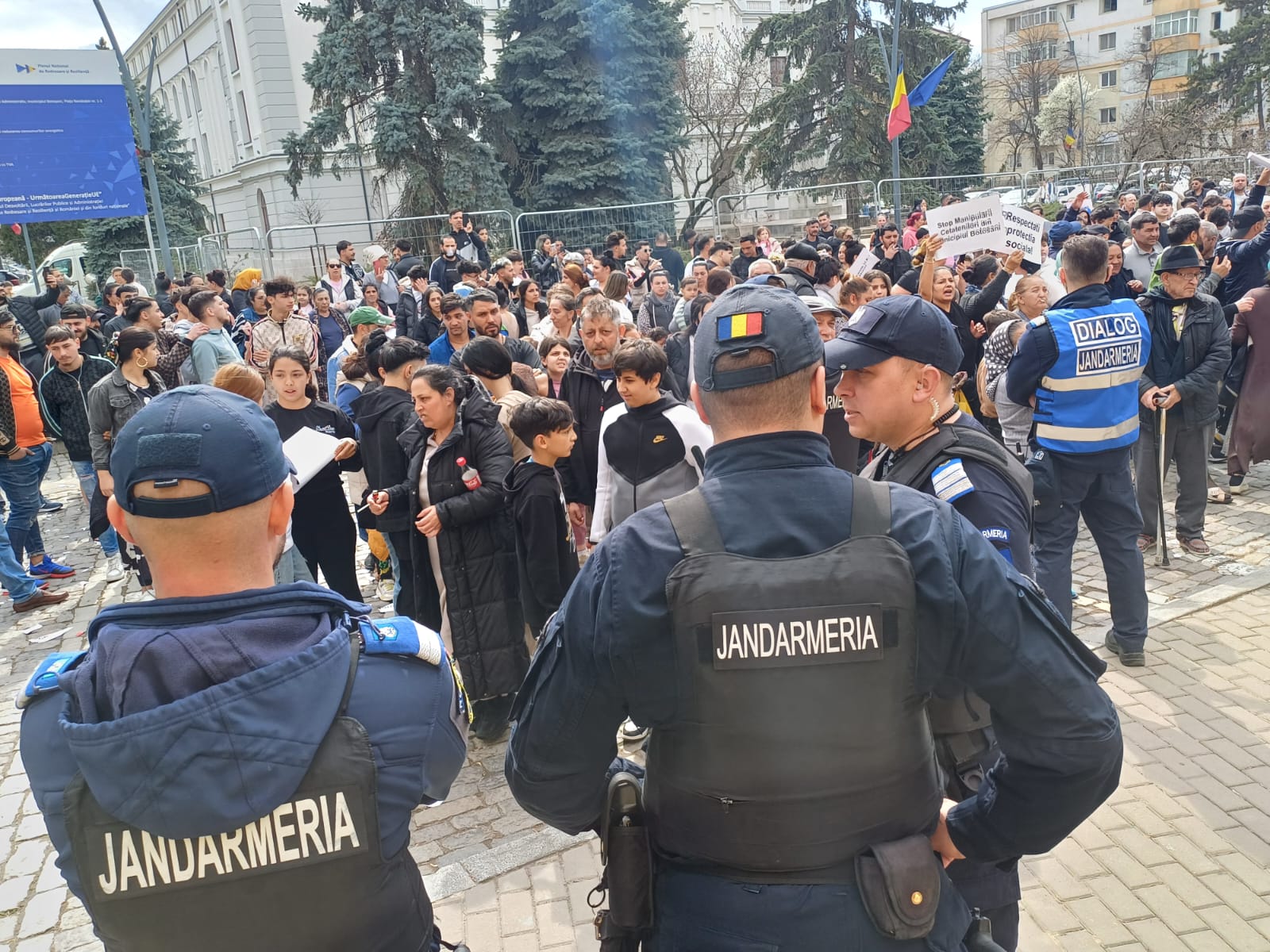 Reprezentanții acestora au mers la discuții cu primarul municipiului Botoșani, Cosmin Andrei. Protestul este organizat de Alianţa pentru Unitatea Rromilor.