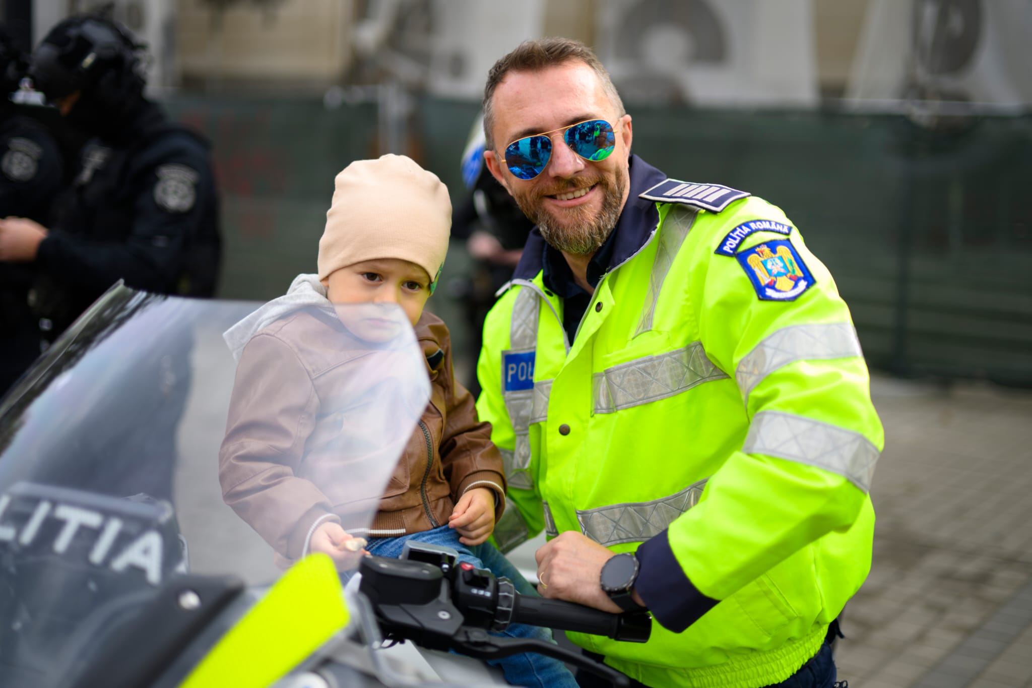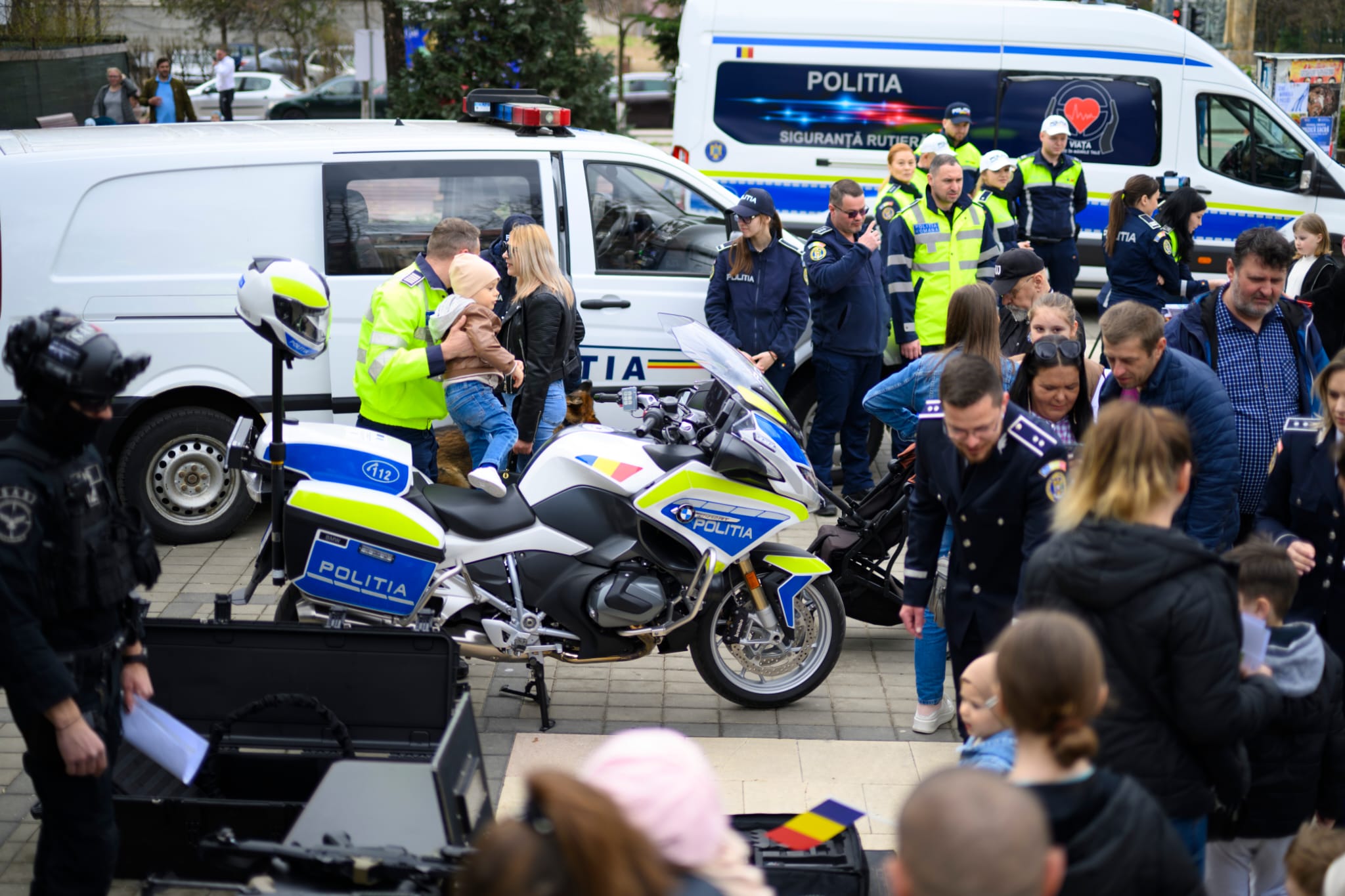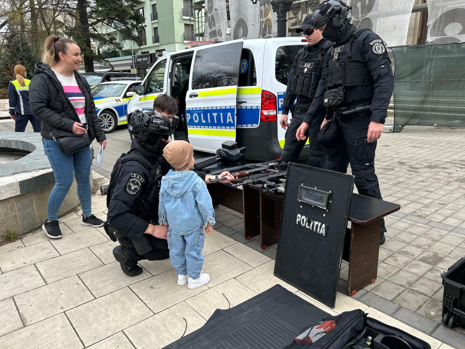 Polițiștii au prezentat tehnica de intervenție, armamentul și autospecialele din dotare, însă atracția evenimentului au fost ”mascații”, care i-au cucerit pe copiii de toate vârstele și motocicleta polițiștilor rutieri.