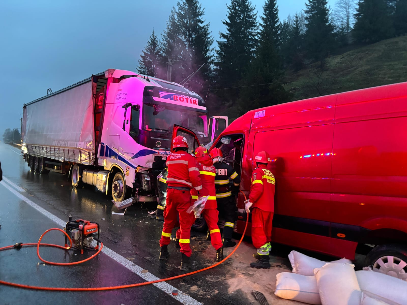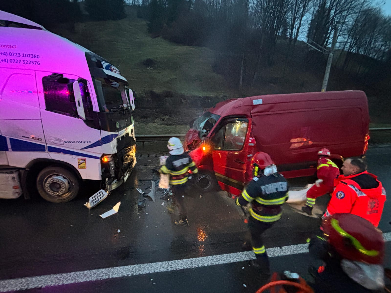 Șoferul de pe VW și un pasager de 36 de ani au suferit vătămări corporale fiind preluați și transportați de către echipajele medicale la Spitalul de Urgență Sf. Ioan cel Nou Suceava în vederea acordării de îngrijiri medicale.