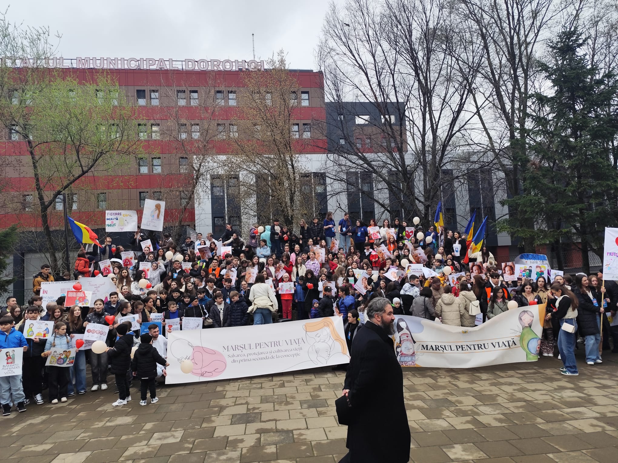 Peste 20 de preoți și sute de persoane au participat, duminică, la Marșul pentru viață din municipiul Dorohoi. Participanții la acțiune, care militează pentru interzicerea avorturilor și pentru familiile tradiționale, au afișat mesaje de genul „Iubește viața”, „Dragostea învinge avortul”, „Egalitatea începe la concepție” sau „Iubește-i pe amândoi!”.