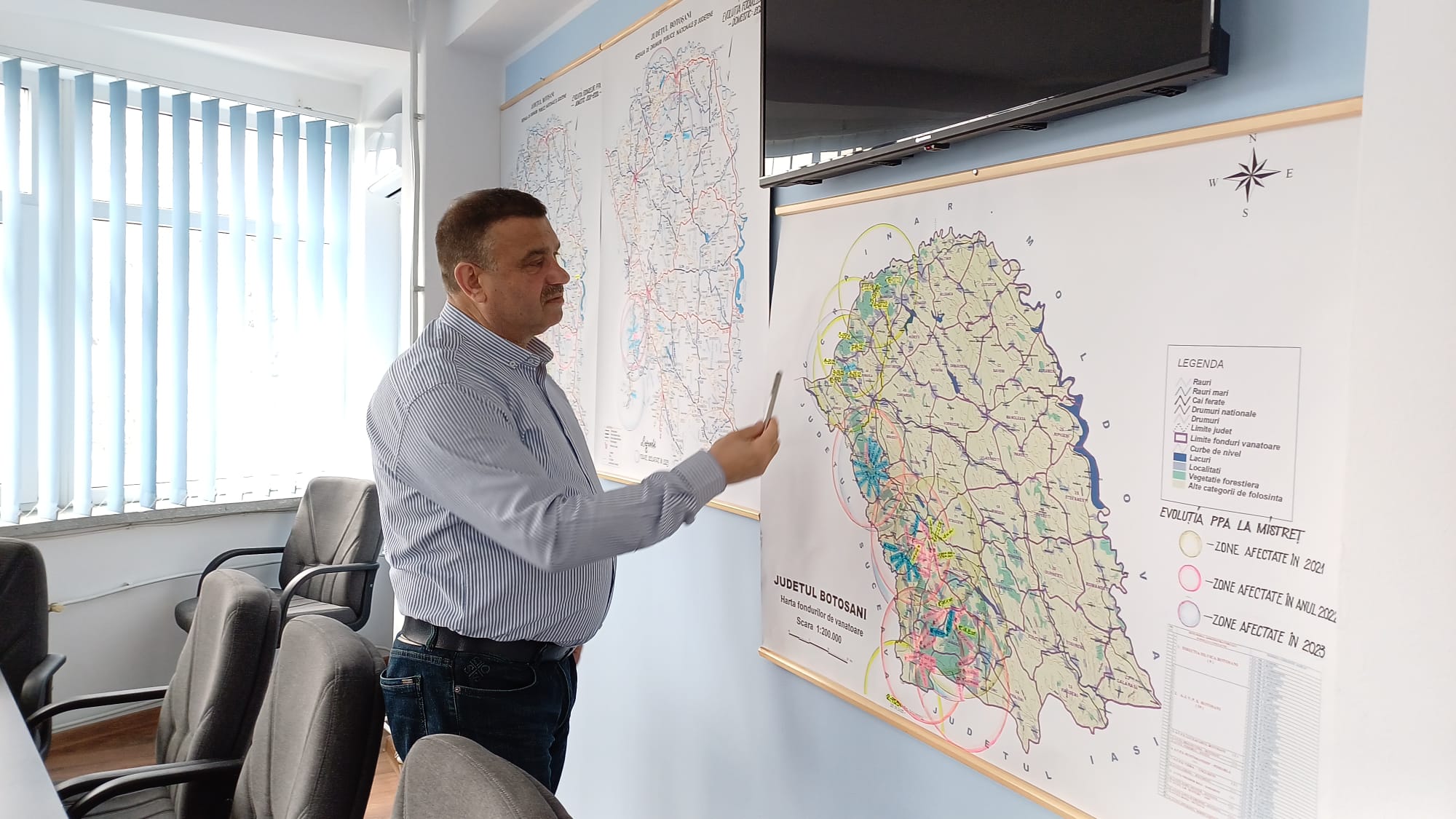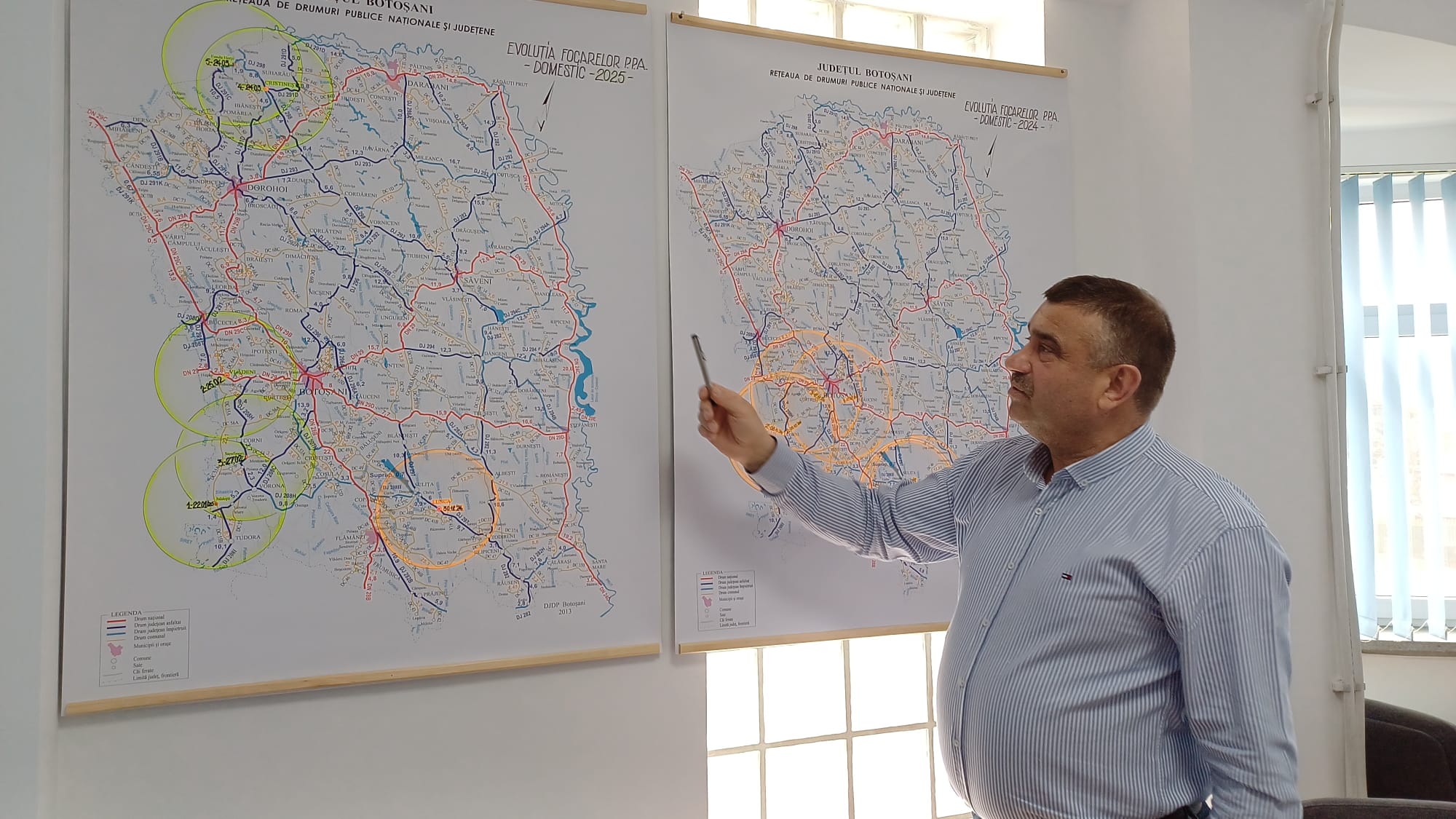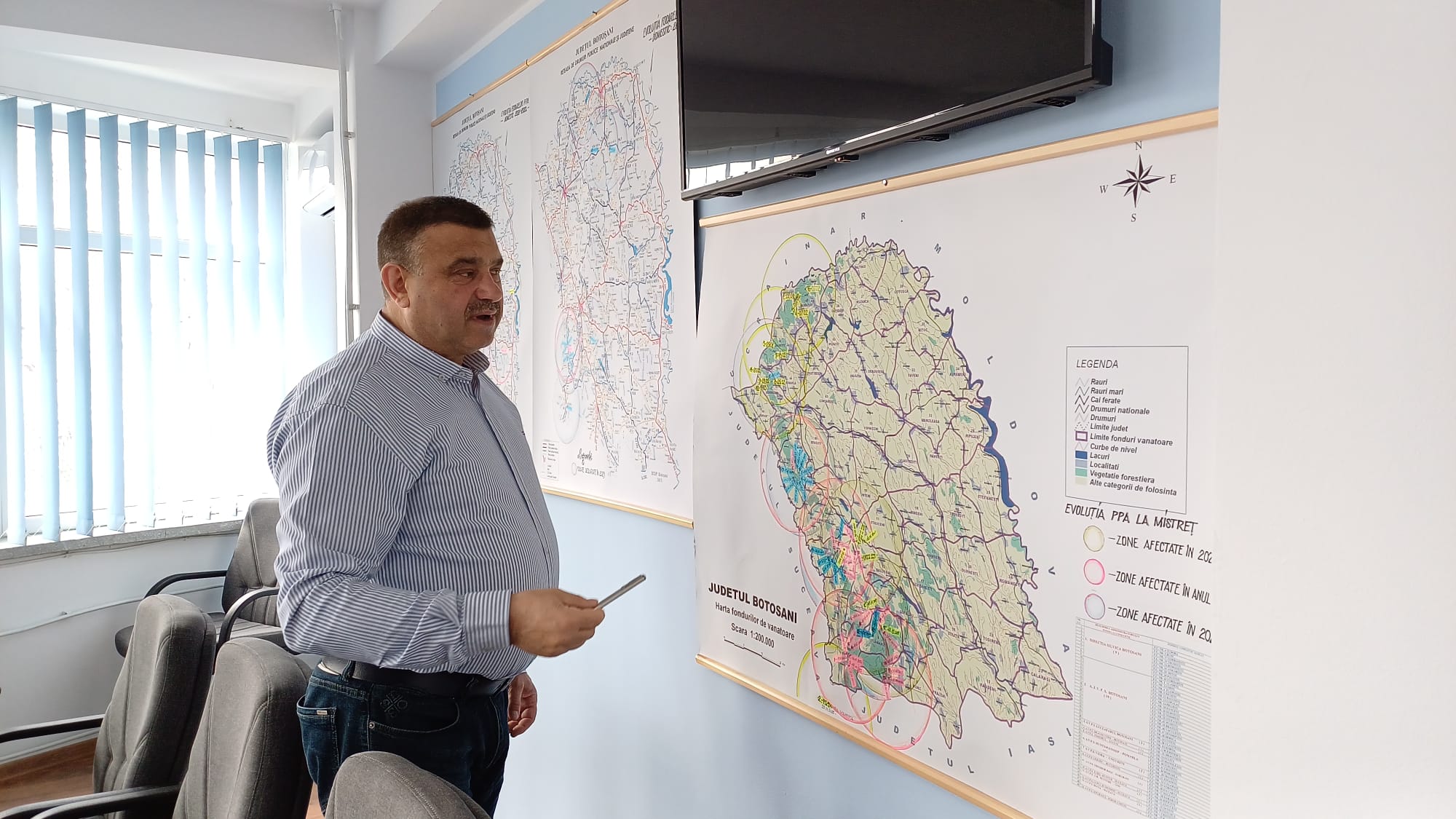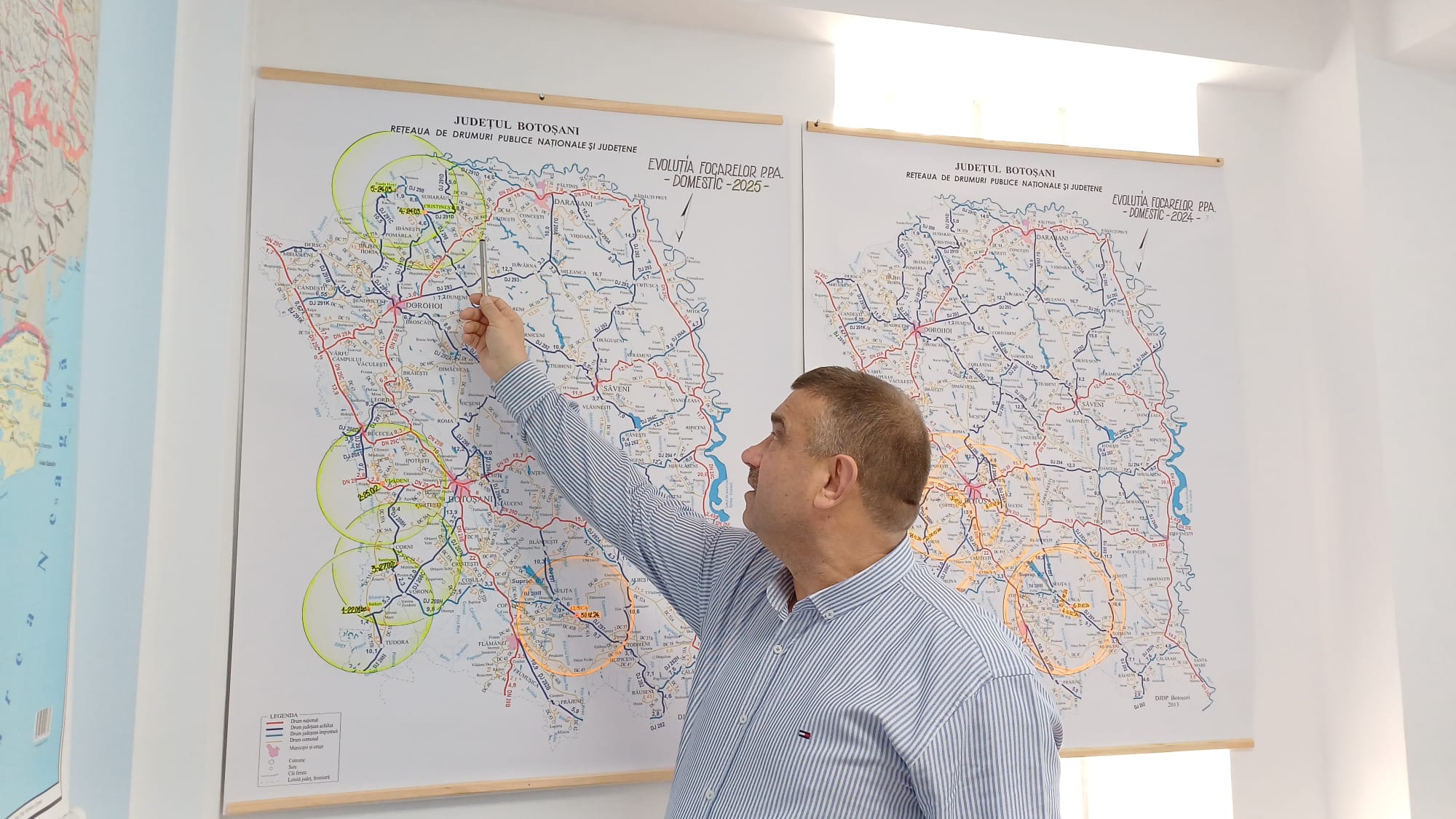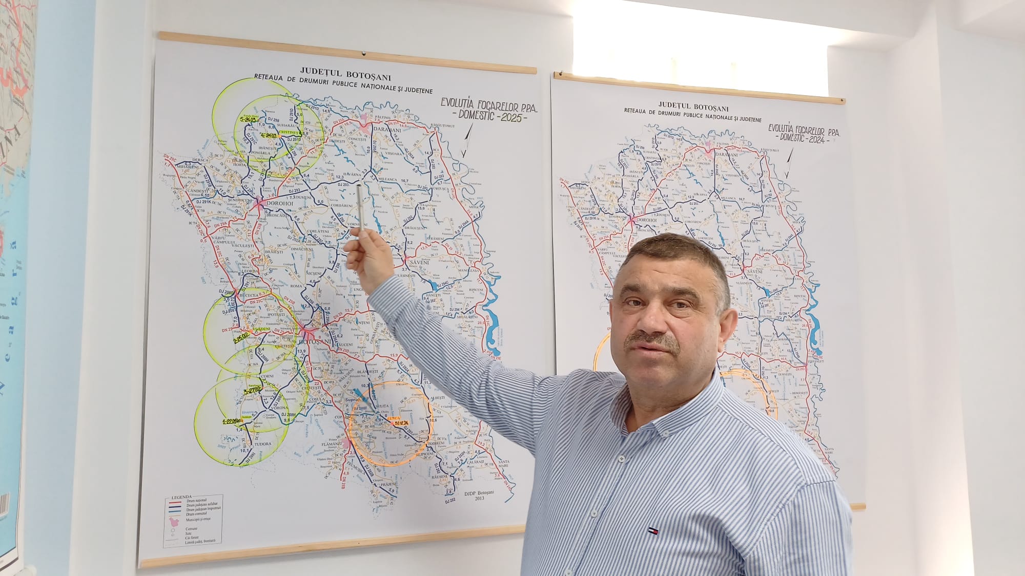 „În primă fază, am început pe 22 ianuarie, din partea de Sud a județului mergând din comuna Vorona, apoi Corni și apoi Vlădeni, cu trei focare de pestă porcină africană. Ultimele două focare sunt cele de la Fundu Herții și Cristinești, pe care le avem anul acesta pe porcul domestic. Toată această evoluție a focarelor vine o dată cu această evoluție la porcul mistreț”, a mărturisit directorul DSVSA.