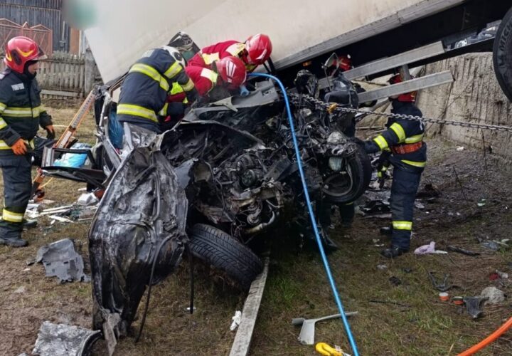 FOTO Nenorocire! Un șofer din Botoșani a murit după ce a ajuns cu mașina sub un camion