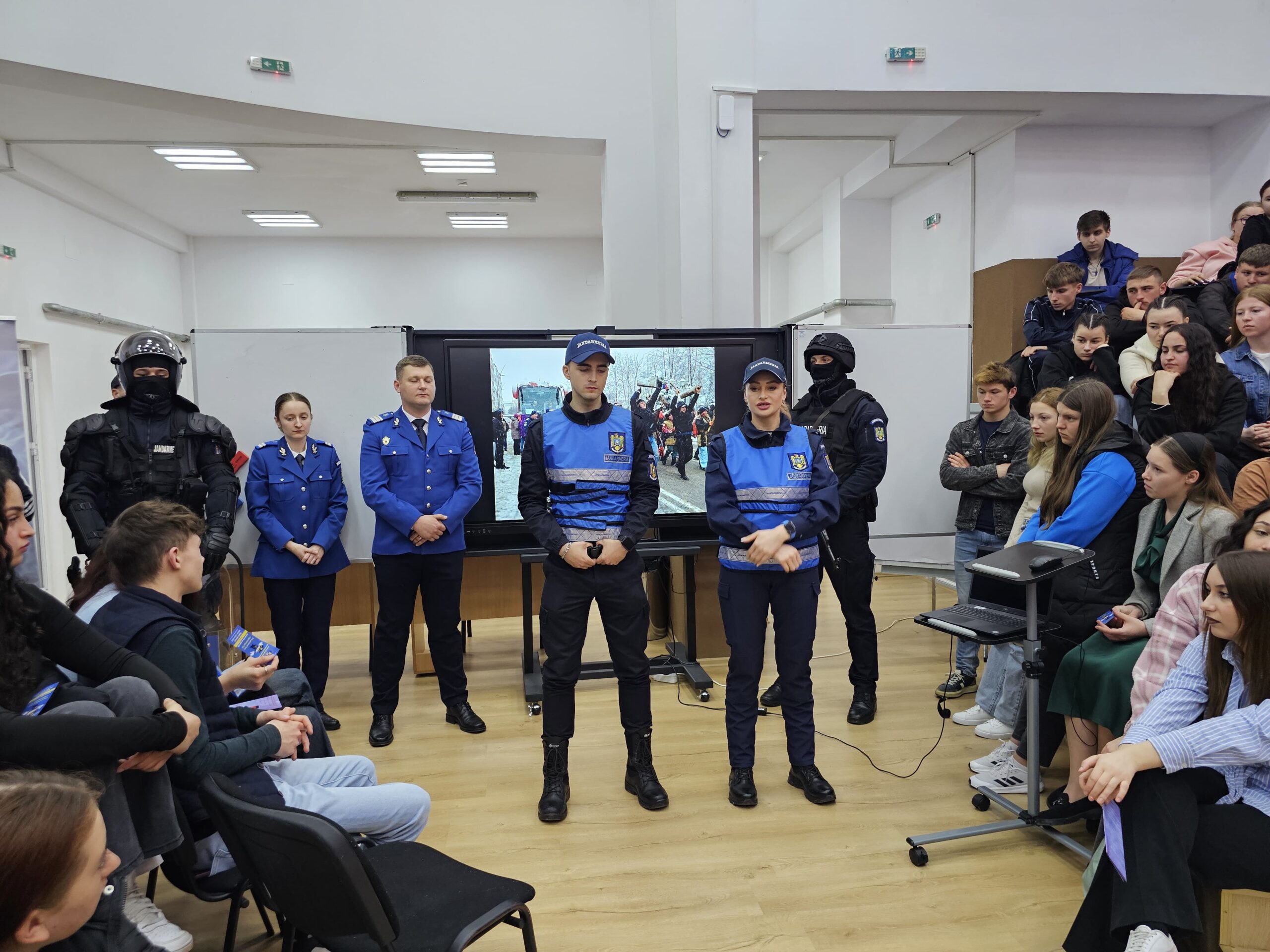 De asemenea, elevii au primit informații despre cariera de militar jandarm și pliante cu aspecte de interes privind admiterea la Academia de Poliție ,,Alexandru Ioan Cuza" București și Școlile Militare de Subofițeri Jandarmi Fălticeni și Drăgășani, dar și flyere preventive în cadrul campaniei ,,Școli în siguranță".