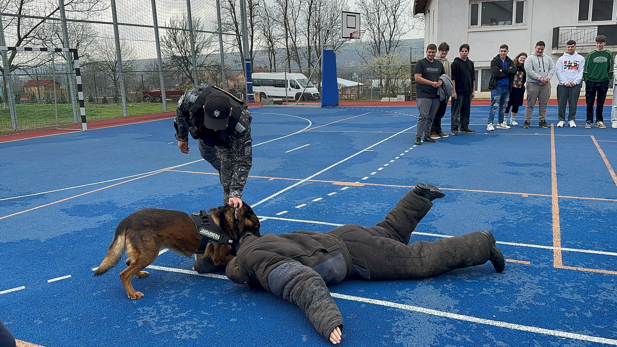 Activităţile în spațiul public prilejuite de aniversarea, în ziua de 3 aprilie, a celor 175 de ani de la înfiinţarea Jandarmeriei Române, au debutat ieri dimineață la Liceul Teoretic ,,Dr. Mihai Ciucă" Săveni. Jandarmii le-au prezentat elevilor autospecialele din dotare, mijloacele de intervenție și, nu în ultimul rând, câinii de serviciu, care au executat, împreună cu conductorii lor, exerciții de disciplină și intervenție.