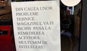 Reprezentanții Profi au pus în geam un anunț potrivit căruia „din cauza unor probleme tehnice, magazinul va fi închis până la remedierea acestora”.