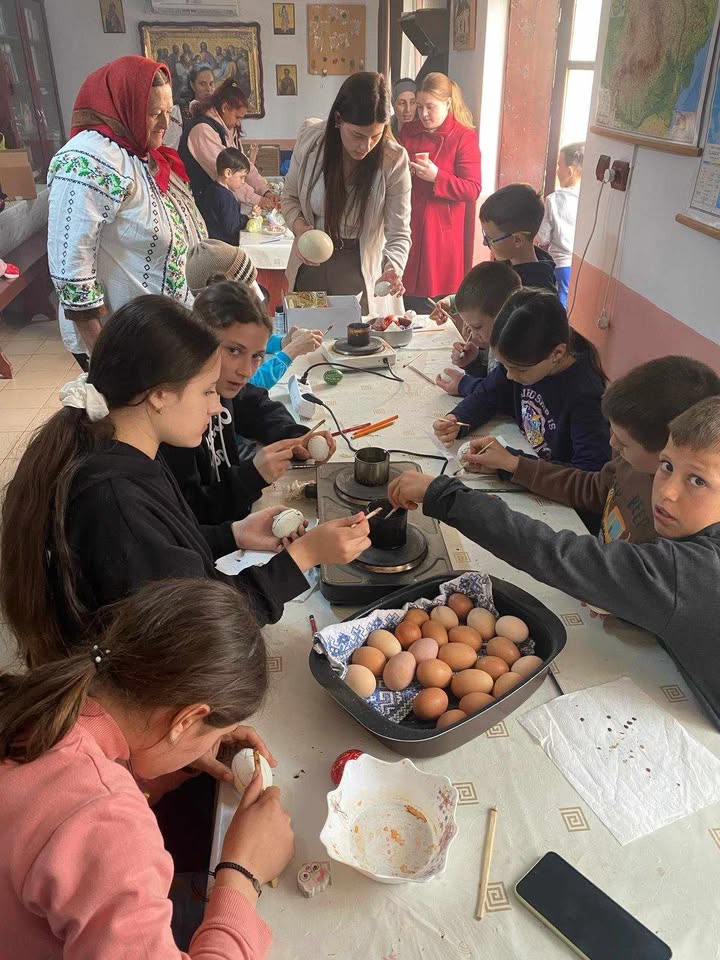 Preșcolarii și elevii Școlii Primare Nr. 3 Coștiugeni, structură a Școlii Gimnaziale Nr. 1 Albești, Director Prof. Anca Nicoleta Mutuzac, au avut ocazia să învețe tainele încondeierii ouălor şi să își exprime imaginația prin pictură, sub îndrumarea atentă a coordonatorilor și artiștilor plastici prezenți. Materialele necesare desfășurării atelierului au fost puse la dispoziție de Asociația “Nectarie și Prietenii” Stăuceni, care sprijină constant activitățile educative și sociale din comunitate.