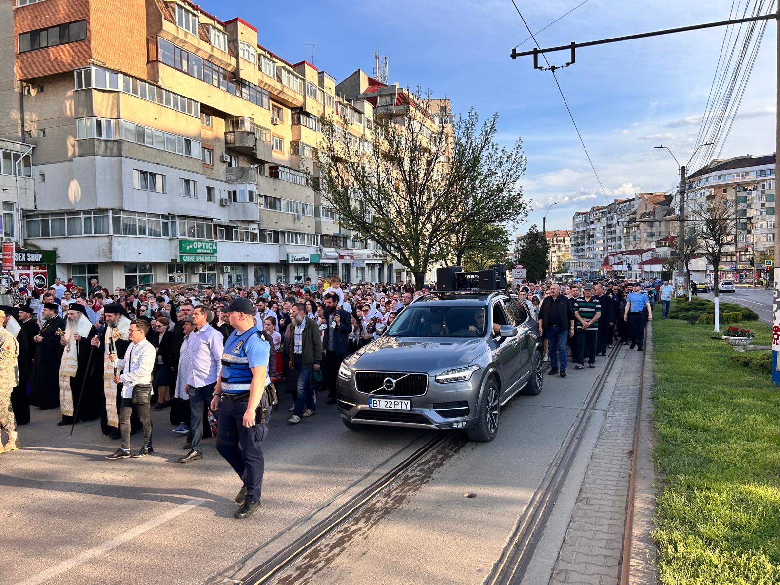 Mii de credincioși participă, marți seară, la Procesiunea Învierii, pe străzile municipiului Botoșani. În procesiune pe străzile municipiului reședință de județ sunt purtate moaștele Sfântului Gheorghe Pelerinul, aduse de la Mănăstirea Văratec, județul Neamț.