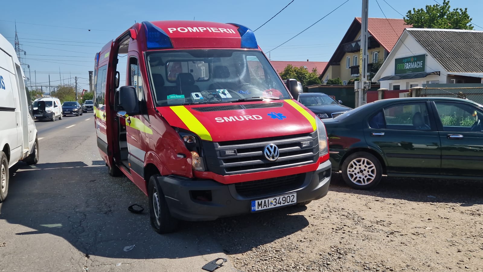 Bărbatul aflat la volan nu a observat autospeciala SMURD, care avea stroboscoapele pornite și a efectuat un viraj la stânga.
