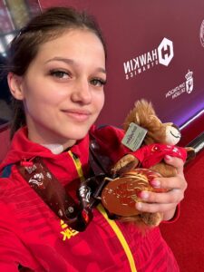 „Am fost selectată de la școală de un antrenor, pentru canapea și haltere și de acolo am fost aleasă. Aveam mobilitate foarte bună și eram foarte micuță de înălțime. Au fost niște ani grei, foarte grei. Pot spune că nu am avut copilărie. A fost un program foarte strict la Botoșani, nu aveam voie să ieșim decât o oră pe săptămâna și aceea duminica, trebuia să ne învârtim foarte repede, la mall, parc, unde voiam, într-o oră trebuia să fim gata. Masa la oră fixă, școală, antrenament și cam asta a fost vreo patru ani. A fost greu. Am făcut foarte mult sacrificii, dar a meritat. Când eram mică nu înțelegeam de ce antrenorul este așa strict, dar pe parcurs am înțeles. Ne-a educat. Ne-a făcut să fim mai responsabile, disciplinate”, ne-a povestit Ioana.