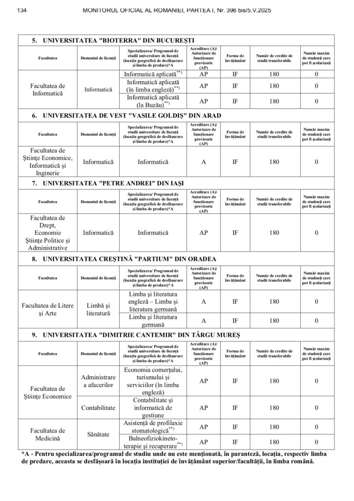 Este vorba despre programe de studii de licență la forma de învățământ cu frecvență sau la distanță. În total sunt programe de studii de licență de la 9 universități din București, Iași, Galați, Arad, Bihor, Mureș.