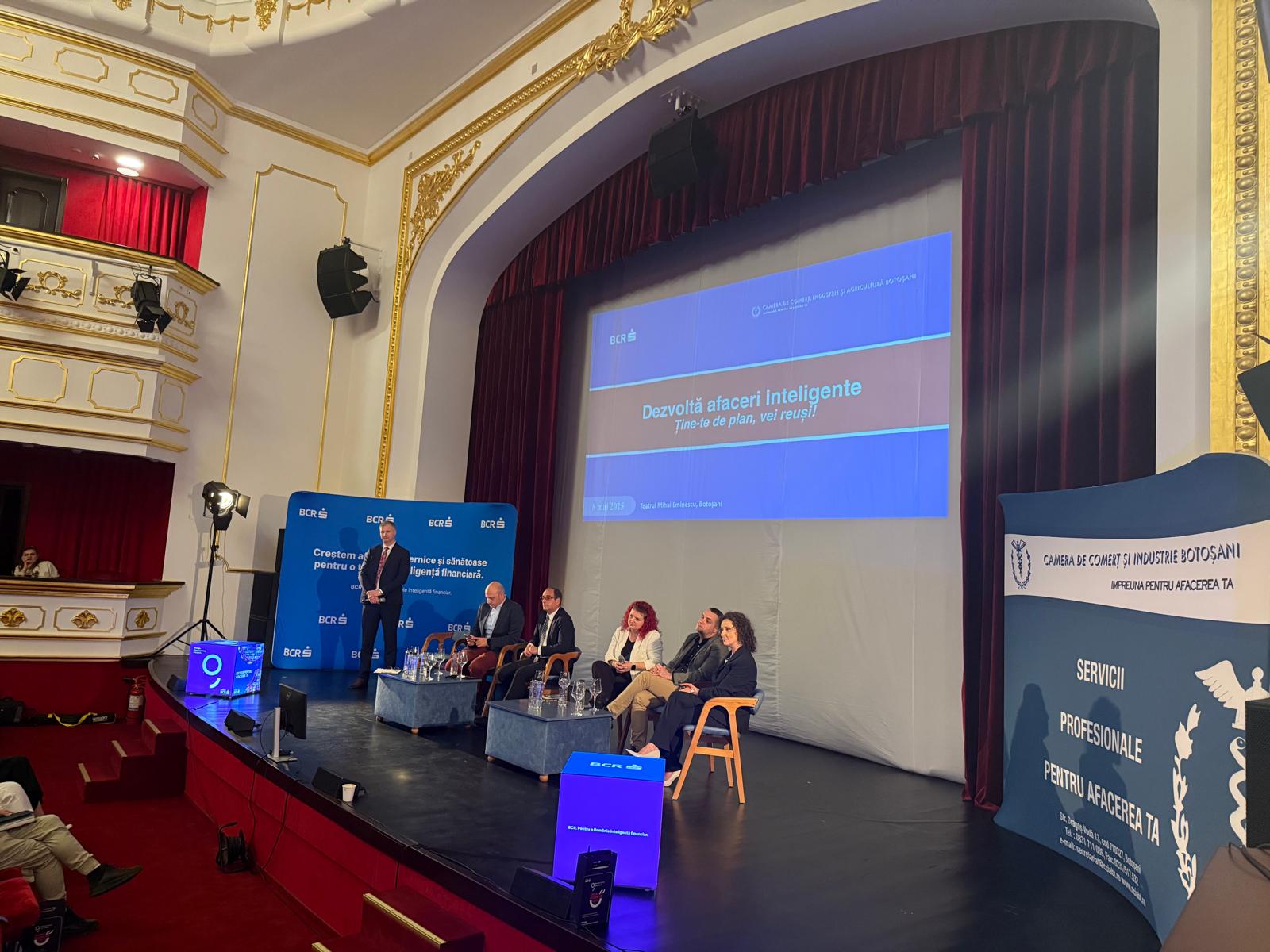 Teatrul „Mihai Eminescu” din Botoșani a găzduit cea de-a treia ediție a evenimentului „Dezvoltă afaceri inteligente. Ține-te de plan, vei reuși!”, organizat de Banca Comercială Română (BCR), în parteneriat cu Camera de Comerț, Industrie și Agricultură Botoșani. Evenimentul, dedicat antreprenorilor din județ și din regiunea de nord-est a țării, a reunit sute de participanți interesați de dezvoltarea unor afaceri sustenabile, solide și aliniate la contextul economic actual.