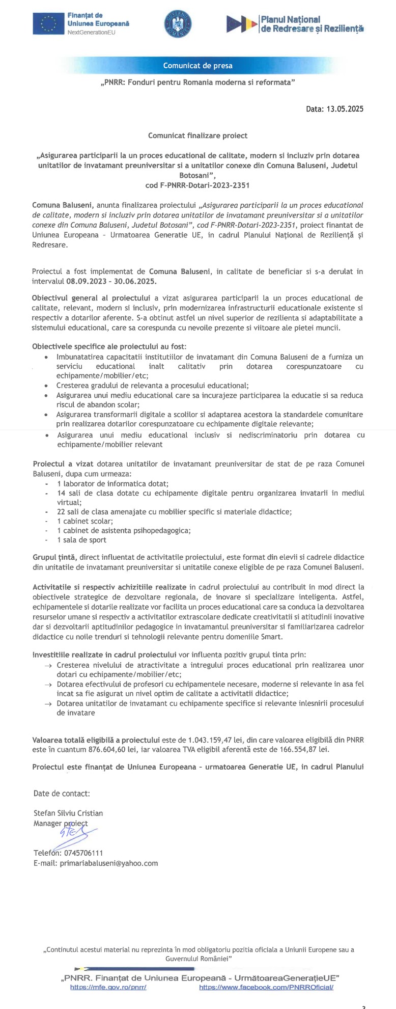 - Comunicat de presă finalizare proiect „Digitalizarea firmei TECO CRIS PROJEKT”