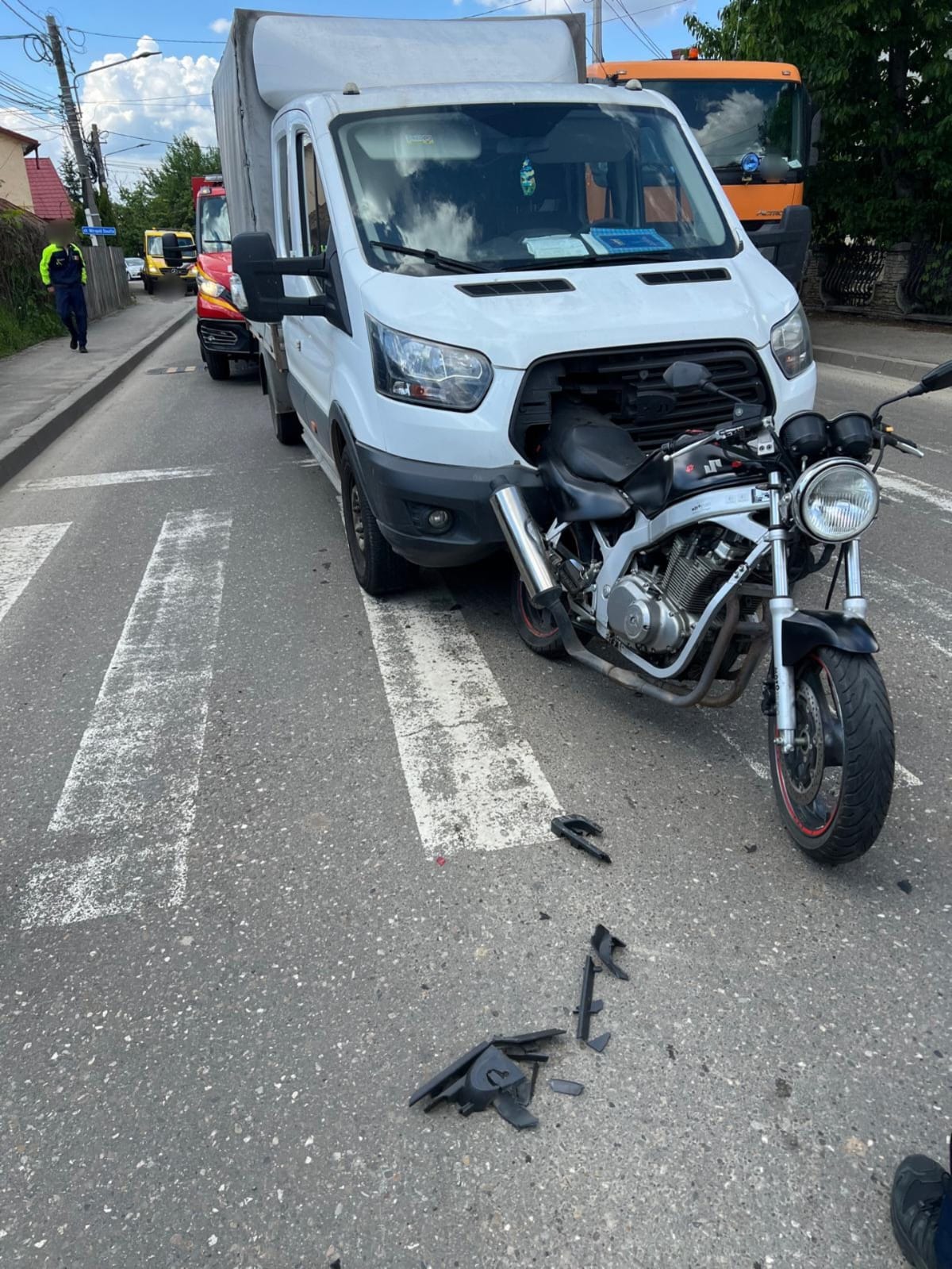 O coliziune între o autoutilitară și o motocicletă a avut loc marți, în municipiul Suceava, pe strada Gheorghe Doja. Au intervenit pompierii militari, cu o autospecială pentru descarcerare și o ambulanță SMURD.